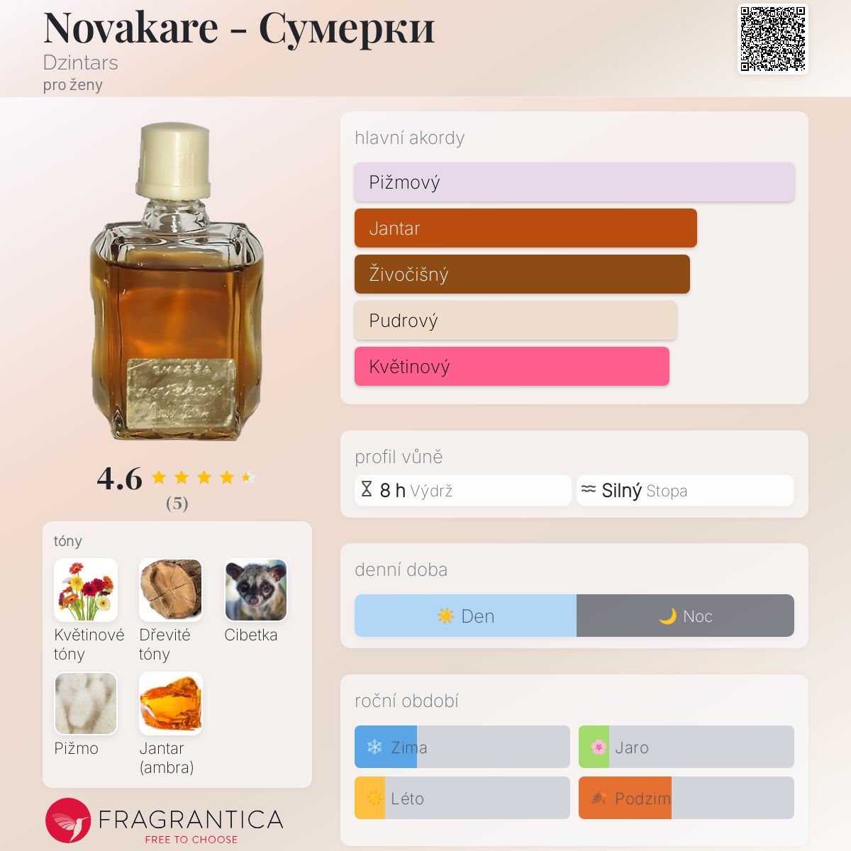 Novakare - Сумерки podle Dzintars je Floral vůně pro ženy. Novakare - Сумерки byl/a uveden/a v roce 1972.