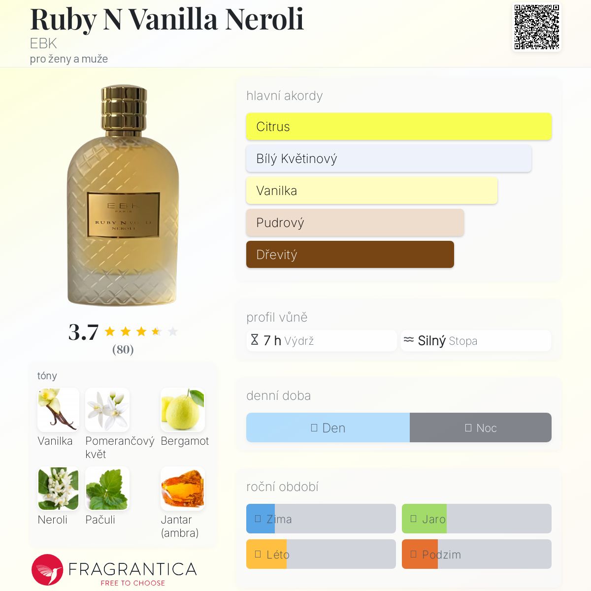 Jedná se o nádhernou bohatou vanilku s brghtností neroli, která jí dodává lehkost pro teplejší počasí.