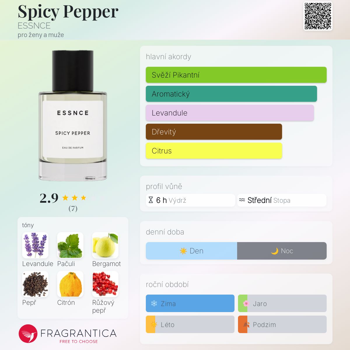 Spicy Pepper podle ESSNCE je Aromatic Fougere vůně pro ženy a muže. Spicy Pepper byl/a uveden/a v roce 2023. Vrchní tóny jsou Bergamot, Pepř a Zedrát; střední tóny jsouLevandule, Růžový pepř a Pelargónie ; základní tóny jsou Pačuli, Jantar (ambra) a Vetiver.