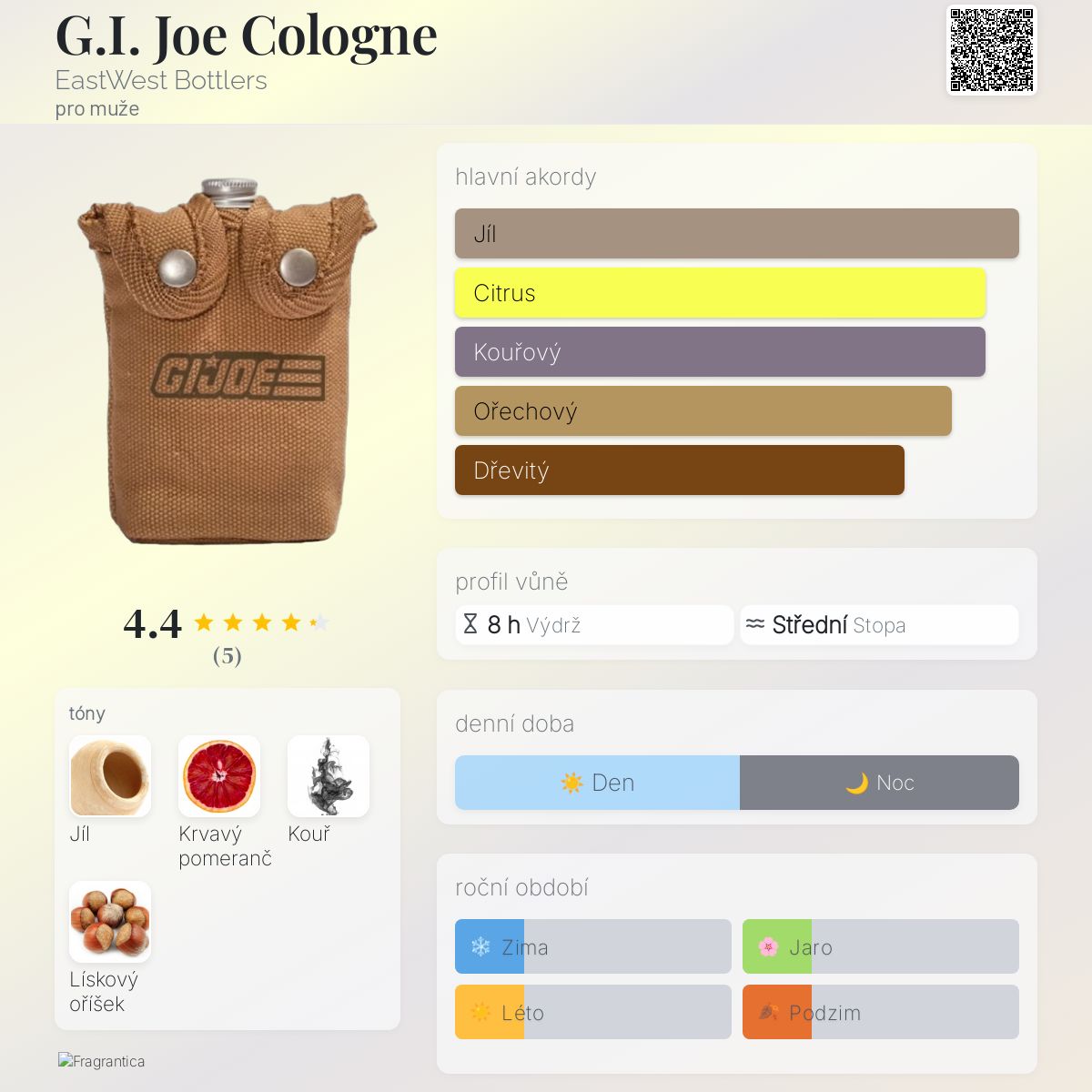 G.I. Joe Cologne podle EastWest Bottlers je Woody vůně pro muže. G.I. Joe Cologne byl/a uveden/a v roce 2016.