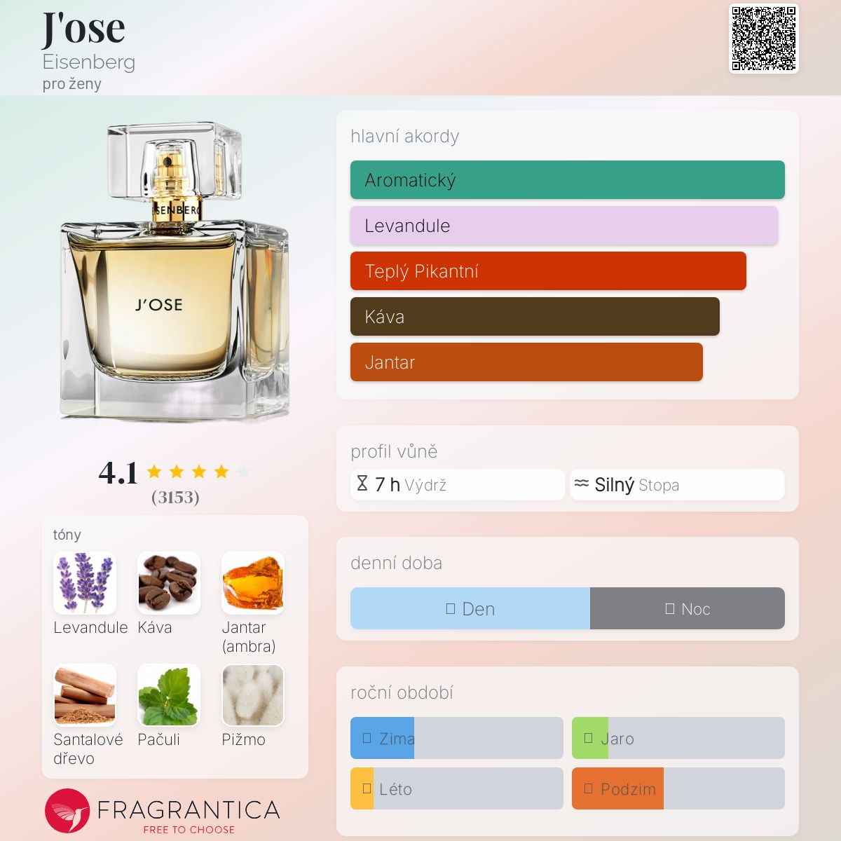 J'ose podle Eisenberg je Aromatic Spicy vůně pro ženy. Vrchní tóny jsou Máta, Citron amalfi , Jasmín a Bergamot; střední tóny jsouLevandule, Káva a Pelyněk ; základní tóny jsou Jantar (ambra), Santalové dřevo, Pačuli, Pižmo, Vanilka, Fazole tonka a Mech.
