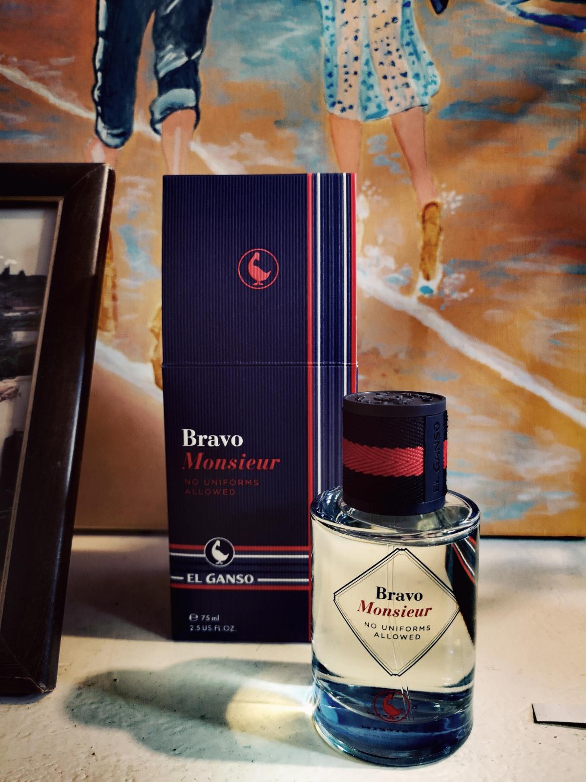 Bravo Monsieur podle El Ganso je Woody Aromatic vůně pro muže. Bravo Monsieur byl/a uveden/a v roce 2019. "Nosem" za touto vůní je Dorothée Piot. Vrchní tóny jsou Kardamom, Fialka, Kadidlo a Pomelo; střední tóny jsouPapyrus, Kosatec, Levandule a Pelargónie ; základní tóny jsou Santalové dřevo, Kašmírové dřevo, Pižmo a Vanilka.