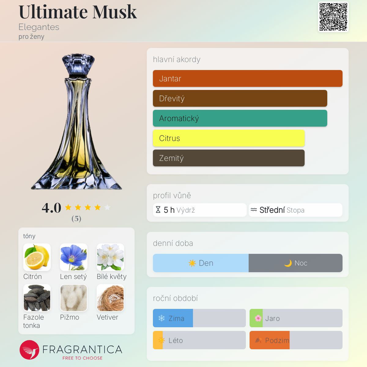 Hodnocení parfému 4.00 z 5 s 5 hlasy