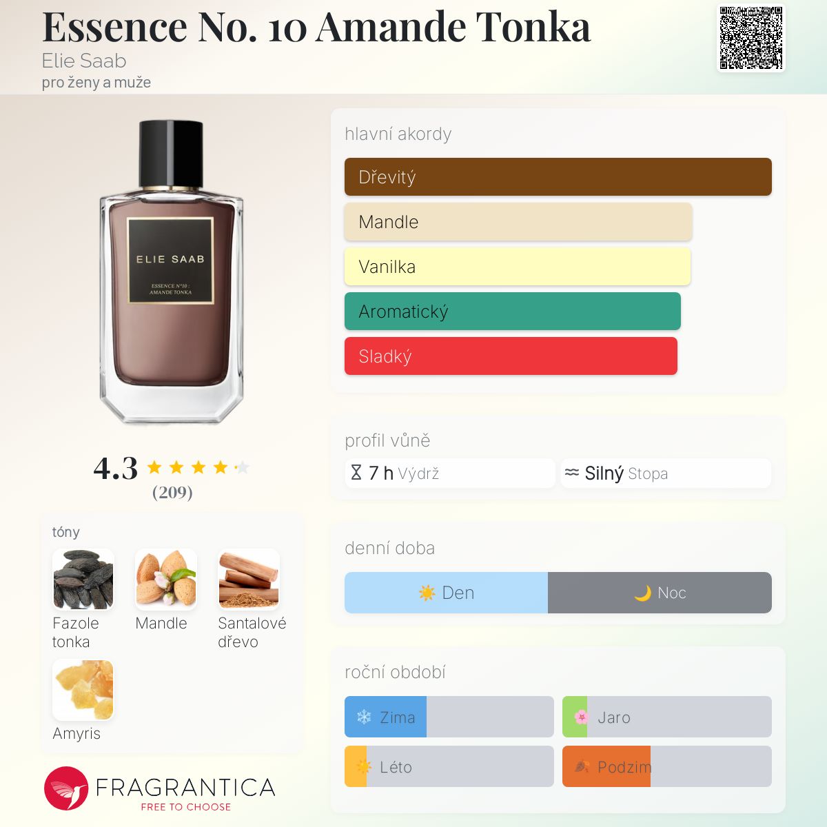 Essence No. 10 Amande Tonka podle Elie Saab je Orientální vůně pro ženy a muže. Essence No. 10 Amande Tonka byl/a uveden/a v roce 2017.