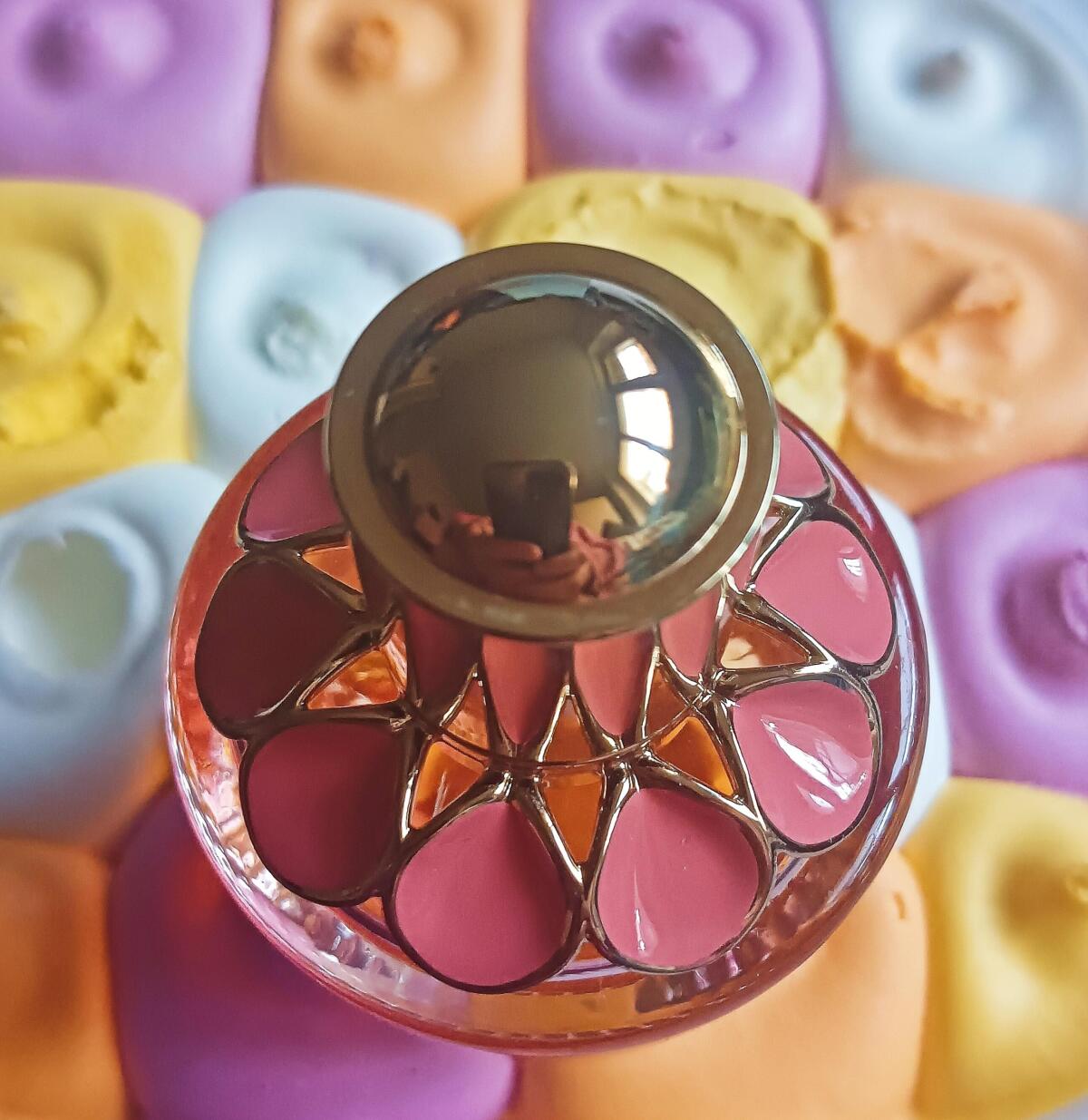 Zrovna jsem hledala náhradu za svou oblíbenou Lancome Midnight rose.vezmu si minimálně 50 ml.přidám po roce používání.já si vzala 30 a díky bohu.za tu dobu nasbírala spoustu komplimentů,ale dusí mě.Ale je velmi veselá, v tomto ohledu byl první dojem správný. růže vůbec necítím. dominantní tón je malina v cukru.