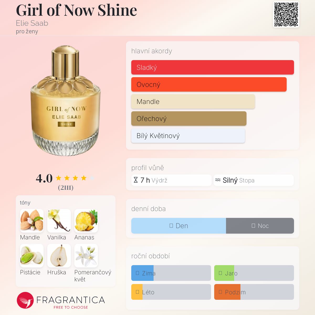 Nádherná vůně! Tušila jsem, že se mi bude líbit ještě víc než původní Girl of Now, a měla jsem pravdu! Tahle je ještě zábavnější! Je mladší, hlasitější a sladší. Elegantní a zářivá, Girl of Now Shine je přesně ten typ parfému, který mám ráda.