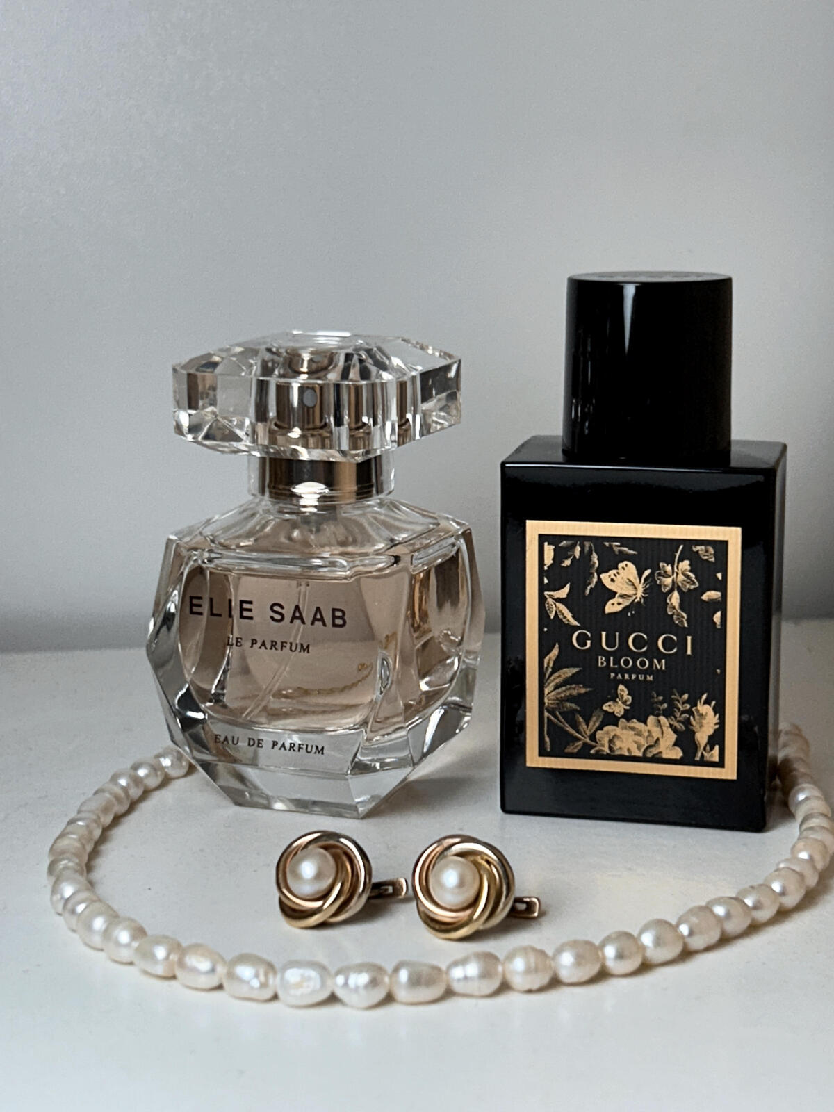 Hodně pomerančových květů, hodně medu a trochu pačuli. Necítím vůni jasmínu ani růže. Le Parfum od Elieho Saaba, parfém, který má zástupy příznivců, mi připadal jako jakási nevlastní dcera Coco Mademoiselle, jen s převládajícím tónem sladkého pomerančového květu opojeného medem, jako méně ovocná Coco Mademoiselle, sladší a s méně pačuli.