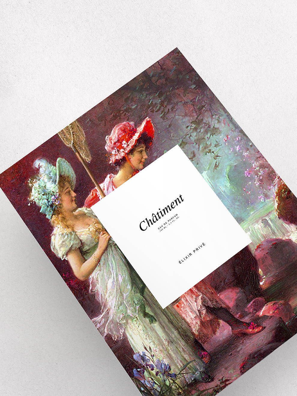 Chatiment podle Élixir Privé je Orientální Floral vůně pro ženy. Chatiment byl/a uveden/a v roce 2020. "Nosem" za touto vůní je Camille Leguay. Vrchní tóny jsou Granátové jablko, Bergamot a Hořký pomeranč; střední tóny jsouPomerančový květ, Vanilka a Broskev ; základní tóny jsou Pačuli, Bílé pižmo a Labdanum.