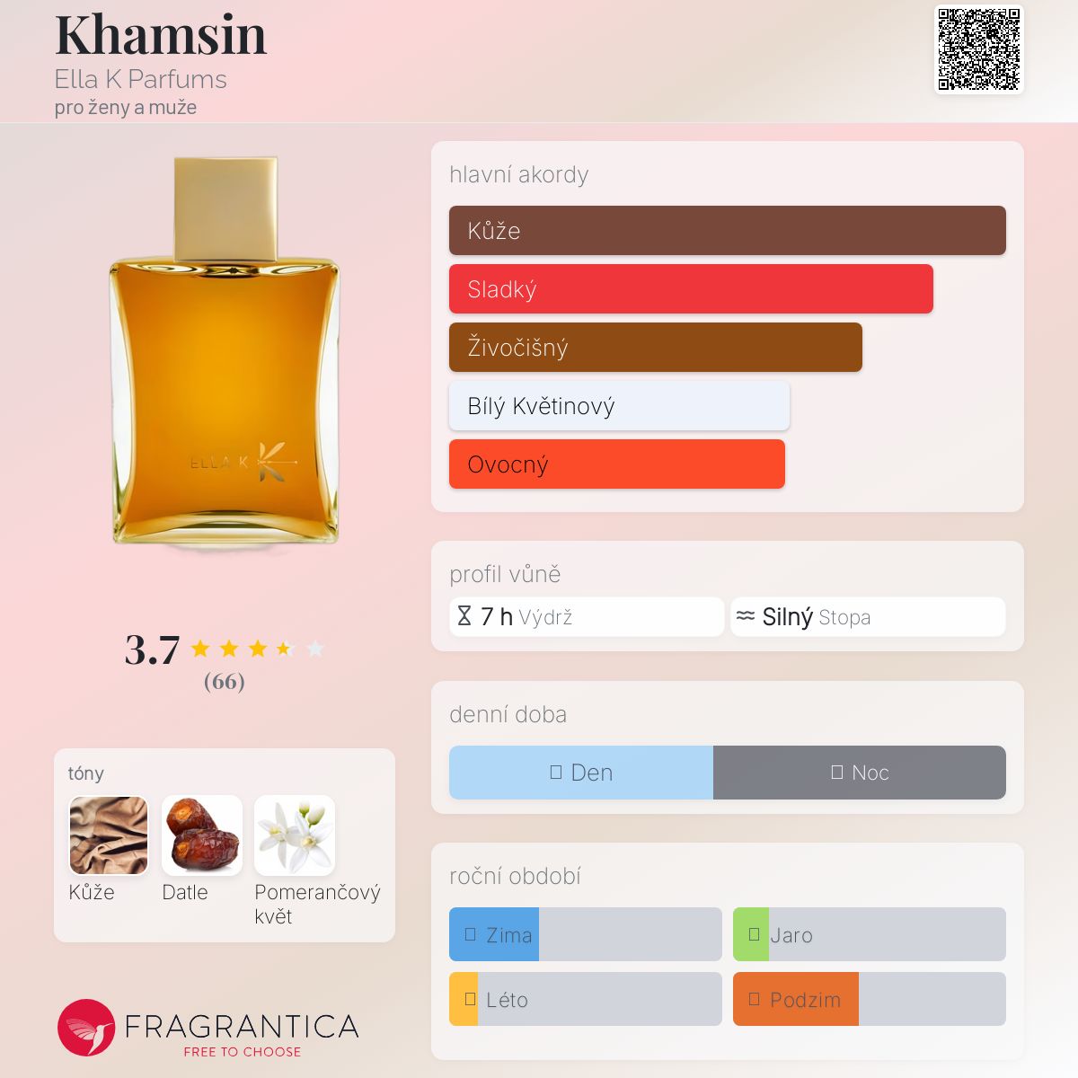 Khamsin podle Ella K Parfums je vůně pro ženy a muže. Khamsin byl/a uveden/a v roce 2021. "Nosem" za touto vůní je Sonia Constant.