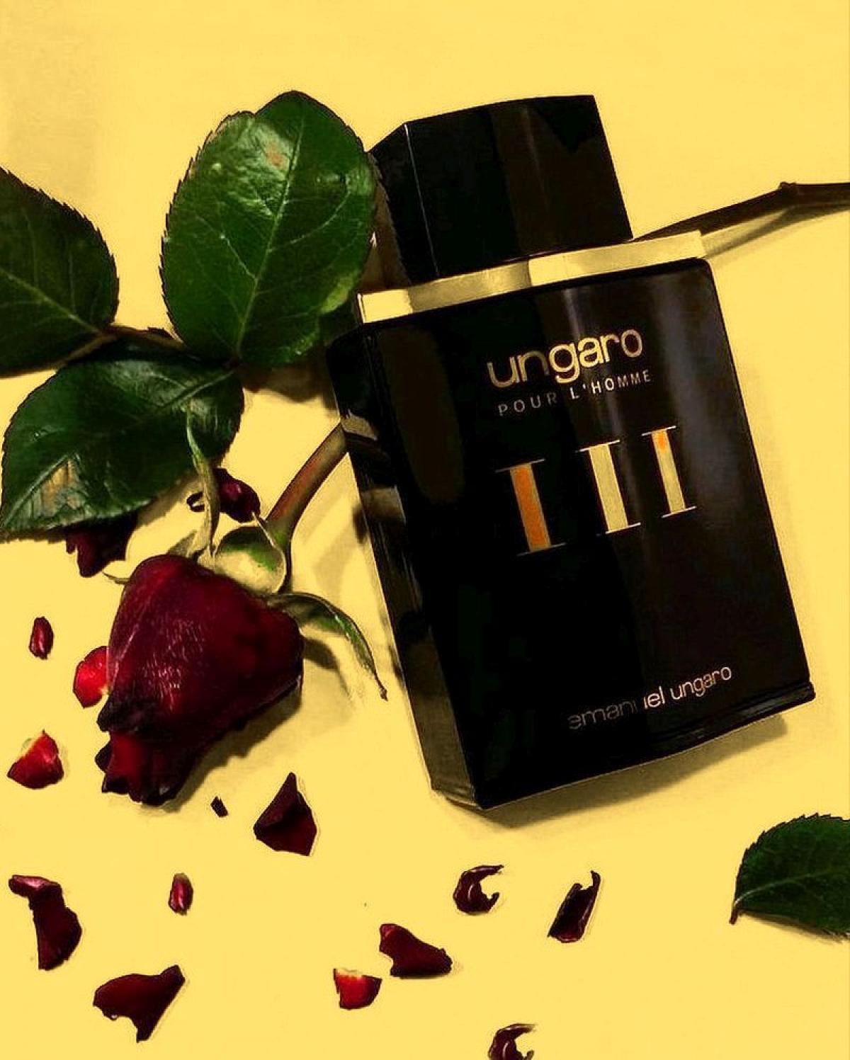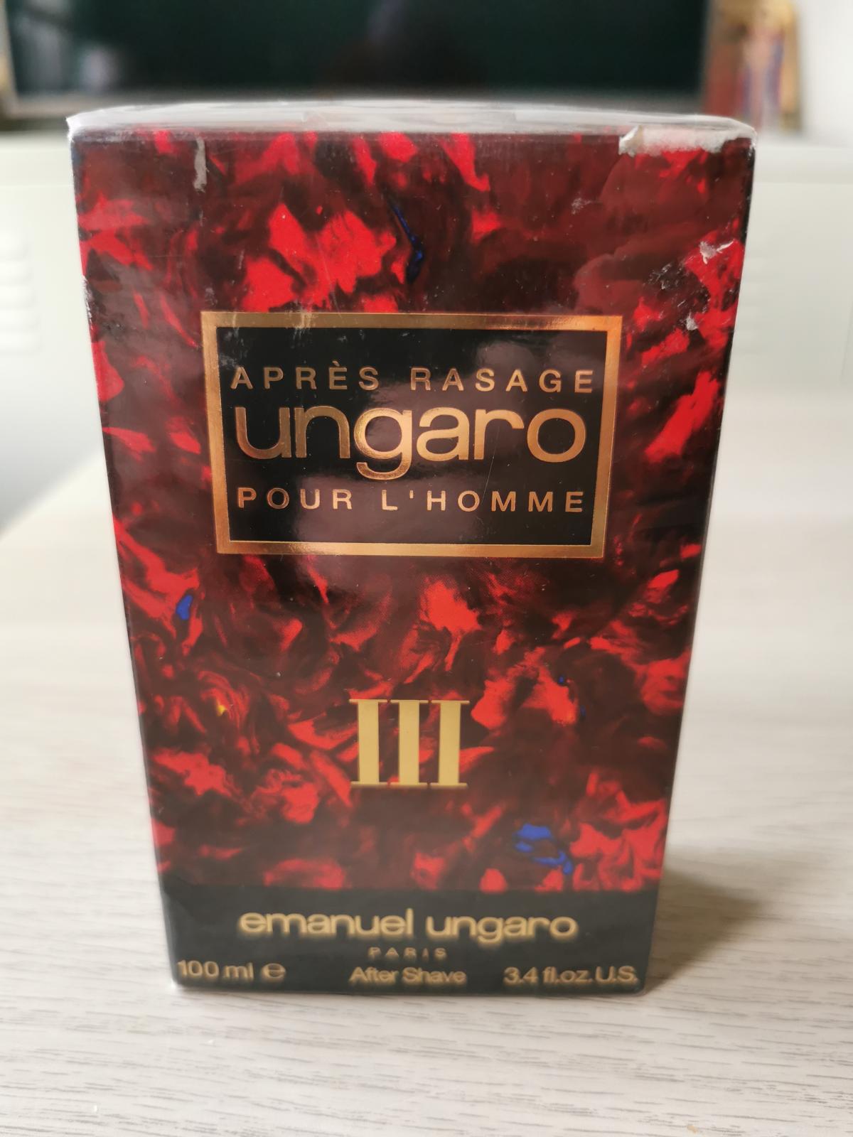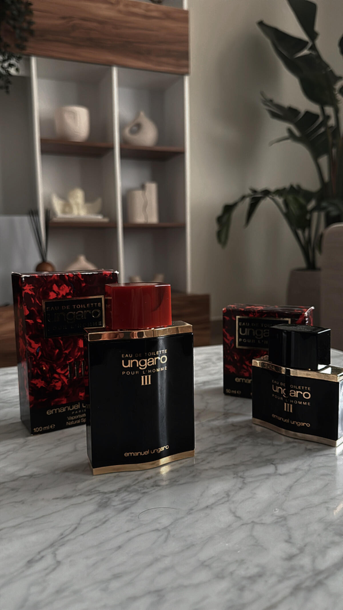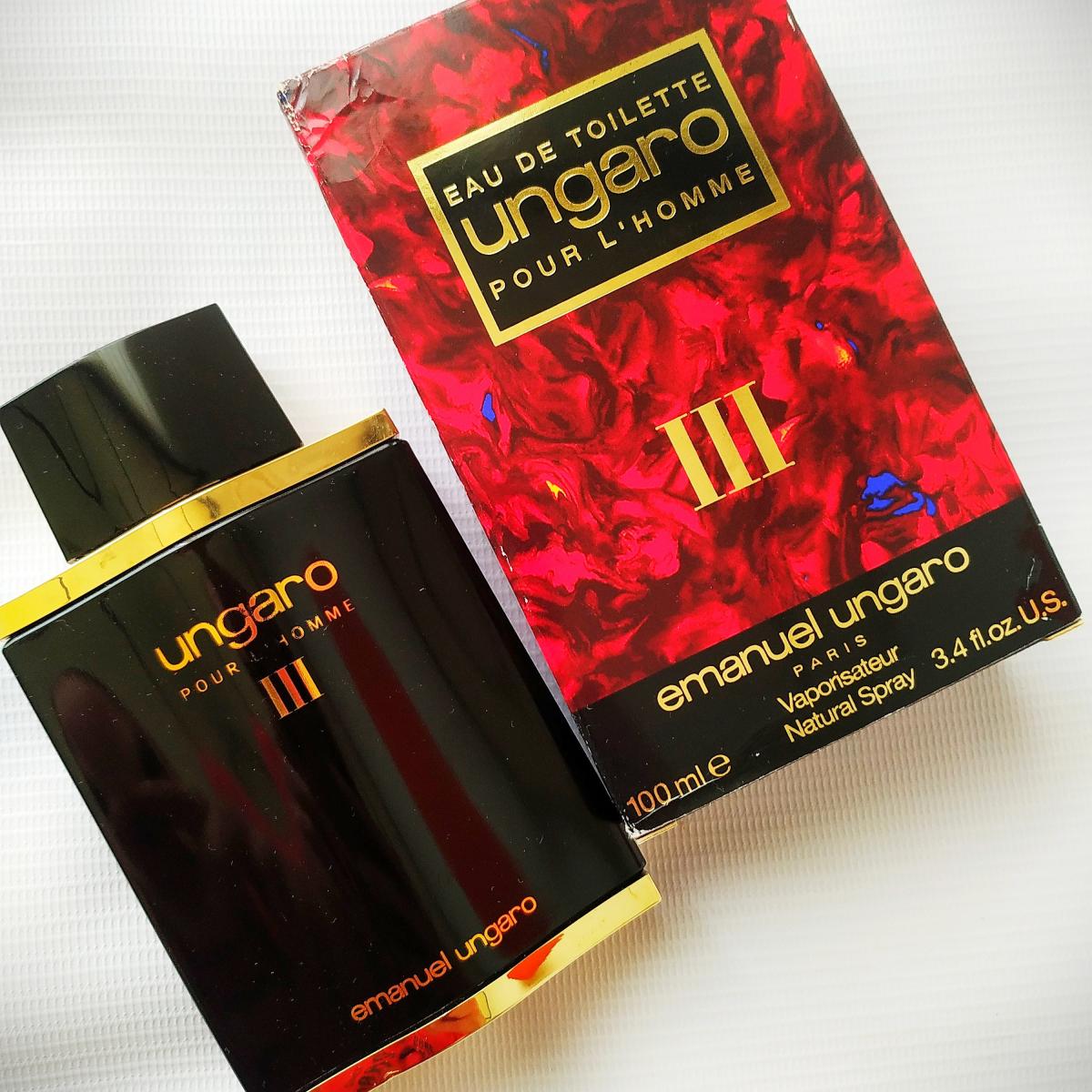 Ungaro pour L'Homme III podle Emanuel Ungaro je Aromatic Green vůně pro muže. Ungaro pour L'Homme III byl/a uveden/a v roce 1993. Vrchní tóny jsou Vodka, Levandule, Koriandr, Šalvěj, Pomeranč, Mahagon a Citrón; střední tóny jsouRůže, Pelargónie, Jasmín a Konvalinka ; základní tóny jsou Santalové dřevo, Pačuli, Vetiver, Dubový mech, Cedr a Pižmo.