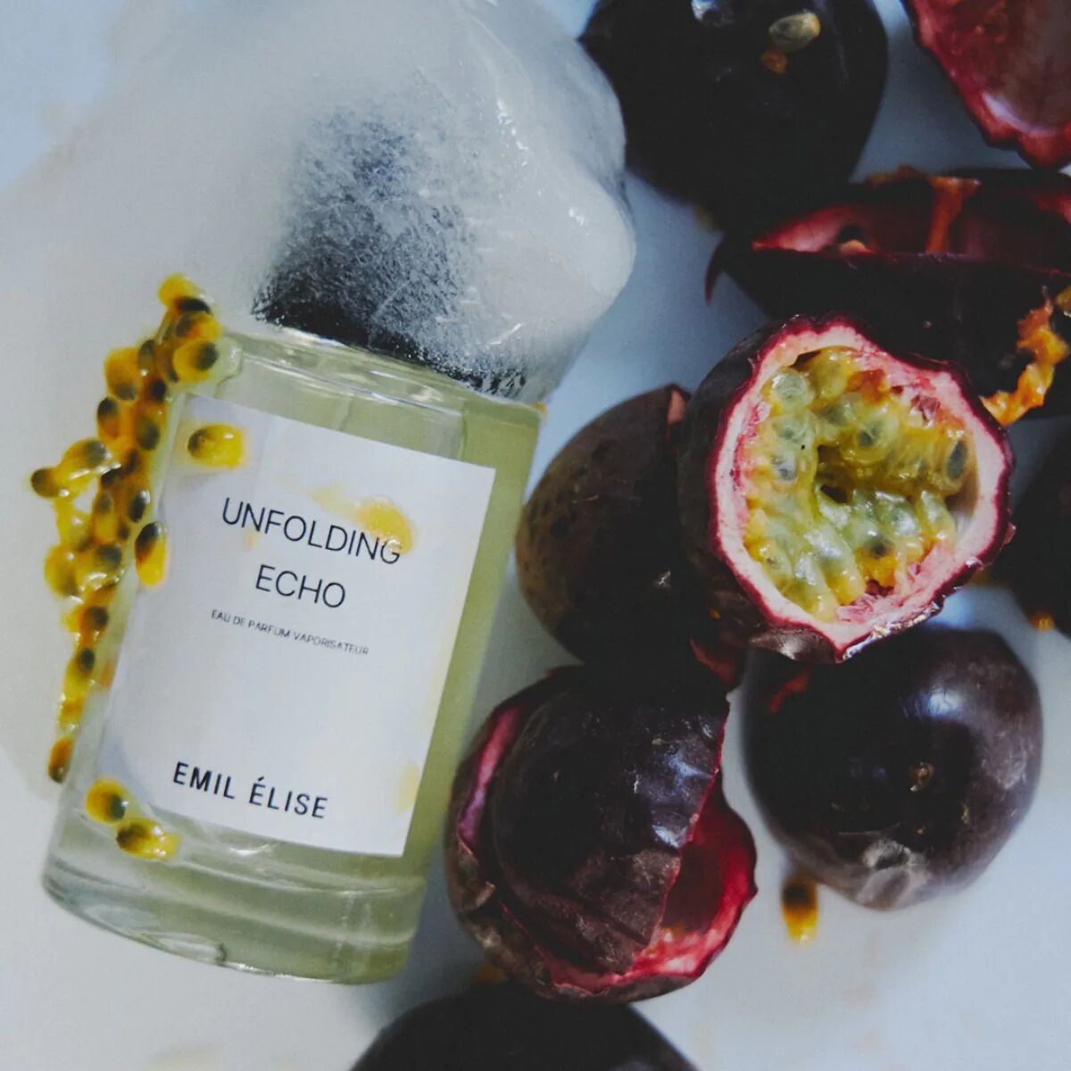 Unfolding Echo podle Emil Elise je Floral Fruity vůně pro ženy a muže. Toto je nová vůně. Unfolding Echo byl/a uveden/a v roce 2024. Vrchní tóny jsou Mučenka a Broskev; střední tóny jsouCukr, Jasmín a Cedr ; základní tóny jsou Mech a Dřevité tóny.