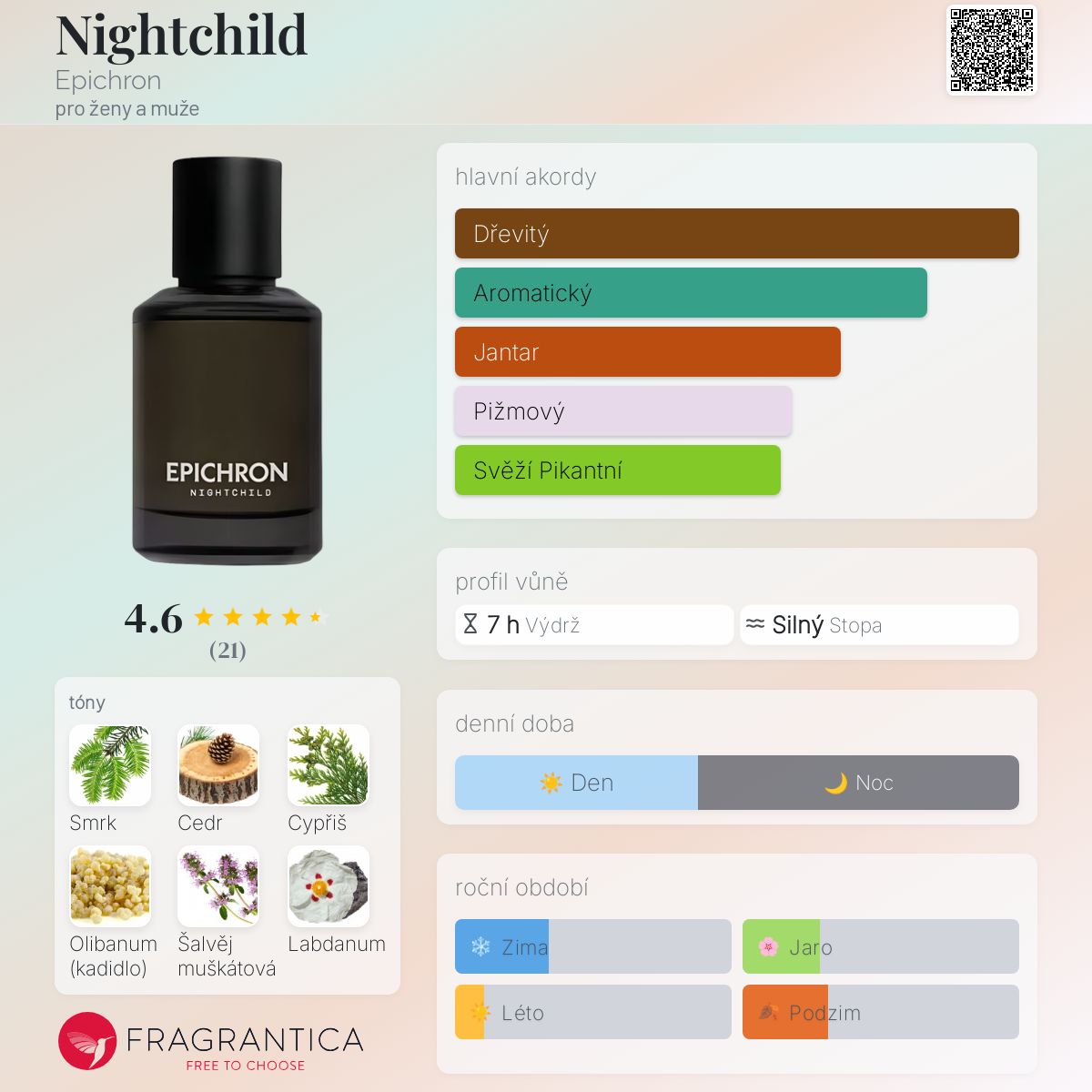 Nightchild podle Epichron je Aromatic vůně pro ženy a muže. Toto je nová vůně. Nightchild byl/a uveden/a v roce 2025. "Nosem" za touto vůní je Michael Nordstrand.