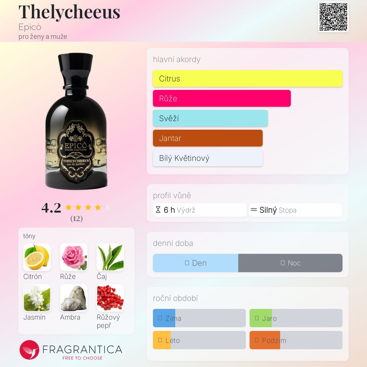 Thelycheeus podle Epicò je vůně pro ženy a muže. Toto je nová vůně. Thelycheeus byl/a uveden/a v roce 2025. "Nosem" za touto vůní je Federico Gucciardi. Vrchní tóny jsou Citrón, Růžový pepř, Liči, Mandarinka, Pomeranč a Granátové jablko; střední tóny jsouRůže, Zelený čaj, Jasmín, Cypřiš a Kořen orris ; základní tóny jsou Ambra, Pižmo, Cedr a Pačuli.