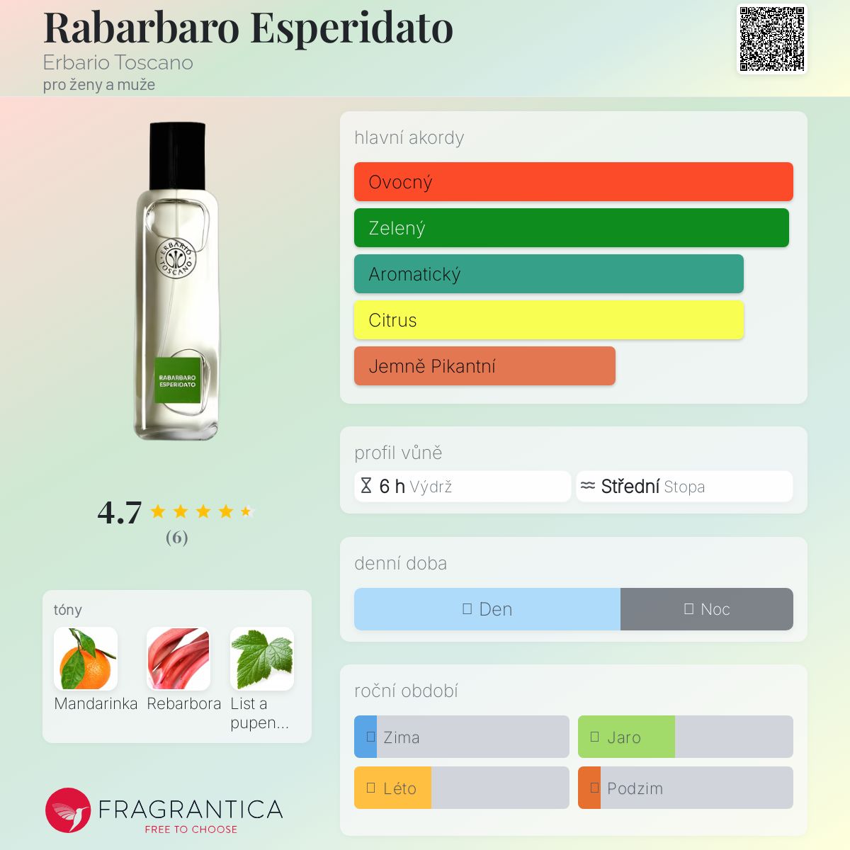 Rabarbaro Esperidato podle Erbario Toscano je vůně pro ženy a muže. Rabarbaro Esperidato byl/a uveden/a v roce 2019.