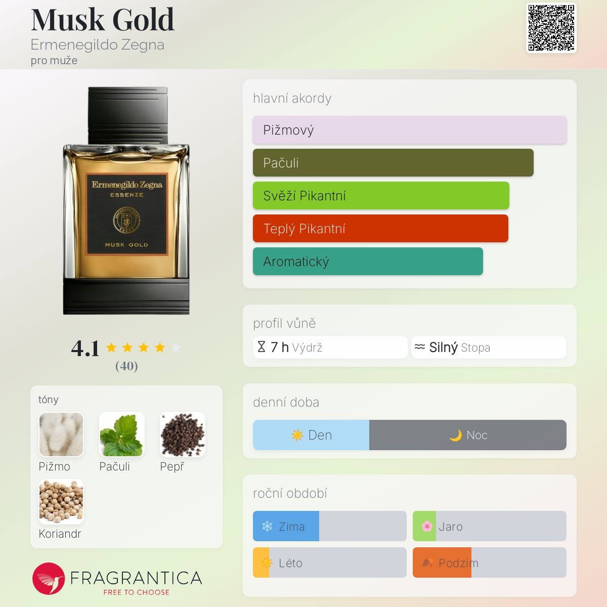 Musk Gold podle Ermenegildo Zegna je Woody Spicy vůně pro muže. Musk Gold byl/a uveden/a v roce 2016.