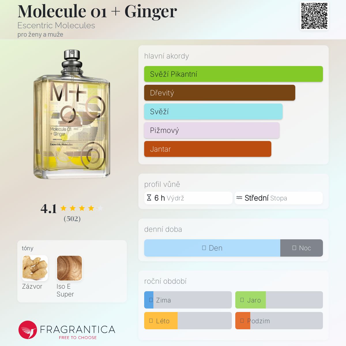 Molecule 01 + Ginger podle Escentric Molecules je Aromatic Spicy vůně pro ženy a muže. Molecule 01 + Ginger byl/a uveden/a v roce 2023. "Nosem" za touto vůní je Geza Schoen.