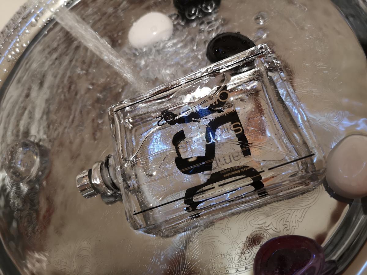 Při míchání se nic neděje. Neexistuje žádné kouzlo, žádná speciální přísada, žádné "počkejte měsíc, než vůně dozraje". To vše je vymyšlené nebo vymyšlené. Je to základní chemie. Komerční parfumerie obvykle přidávají antioxidanty a UV blokátory, aby parfém vydržel déle v lahvičce, ale ty nemají na vůni na vaší pokožce žádný vliv a jsou zcela dobrovolné. Obvykle také přidávají trochu vody, aby v prvních vteřinách nebylo tolik silné sladké etanolové vůně. Voda z kohoutku je v pořádku, ale pokud chcete být opravdu autentičtí, použijte destilovanou vodu z obchodu s potravinami. Nepřidávejte příliš mnoho vody, jinak se Ambroxan začne srážet (roztok se zakalí, pokud se tak stane, stačí přidat zpět trochu ethanolu a vyčistí se). Do svých domácích parfémů nepřidávám žádnou vodu - po prvních 30 sekundách je to jedno, protože etanol je velmi těkavý (vše se rychle odpaří).