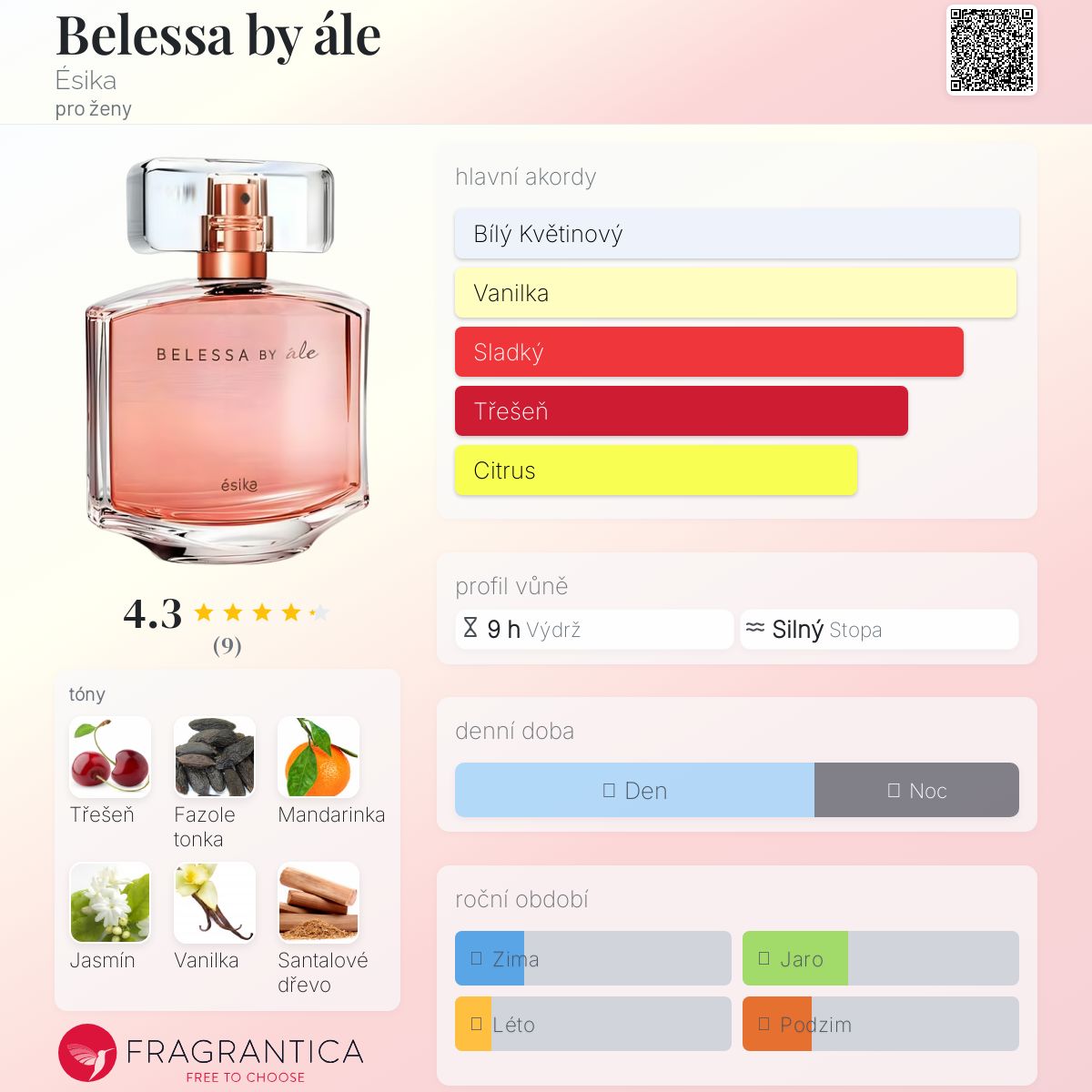 Belessa by ále podle Ésika je Orientální Floral vůně pro ženy. Belessa by ále byl/a uveden/a v roce 2016. Belessa by ále byl/a vytvořen/a Ilias Ermenidis a Frank Voelkl. Vrchní tóny jsou Třešeň a Mandarinka; střední tóny jsouJasmín, Květ tiare a Tuberóza ; základní tóny jsou Fazole tonka, Vanilka a Santalové dřevo.