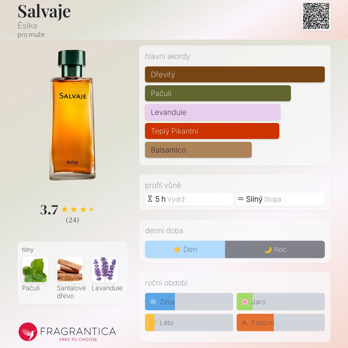 Salvaje podle Ésika je Orientální Fougere vůně pro muže. Salvaje byl/a uveden/a v roce 2004. "Nosem" za touto vůní je Antonio Amador.