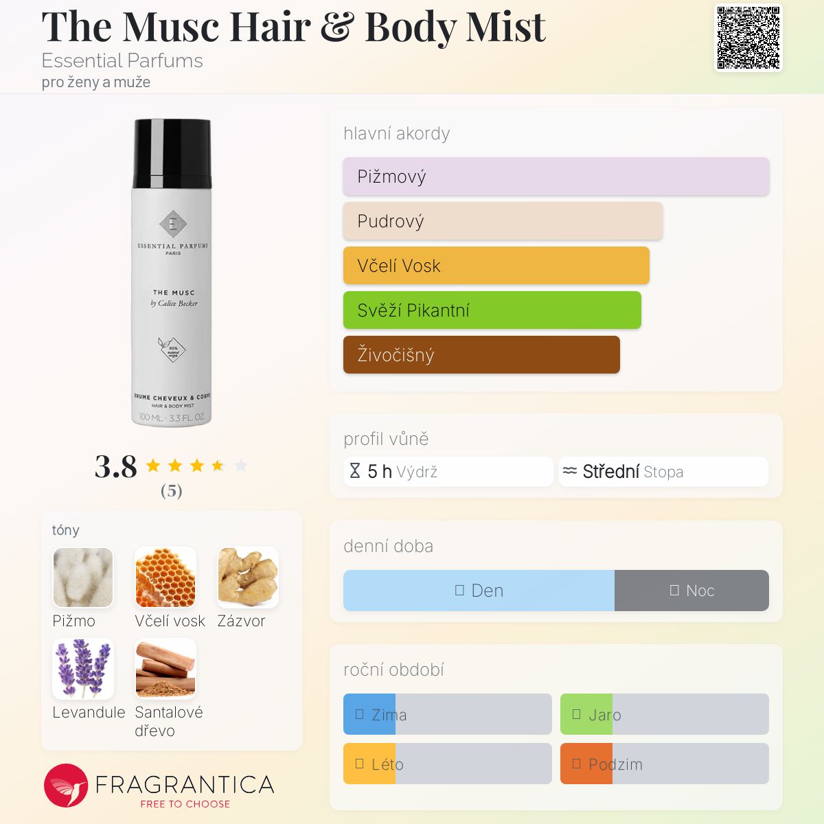 The Musc Hair & Body Mist podle Essential Parfums je vůně pro ženy a muže. Toto je nová vůně. The Musc Hair & Body Mist byl/a uveden/a v roce 2025. "Nosem" za touto vůní je Calice Becker.