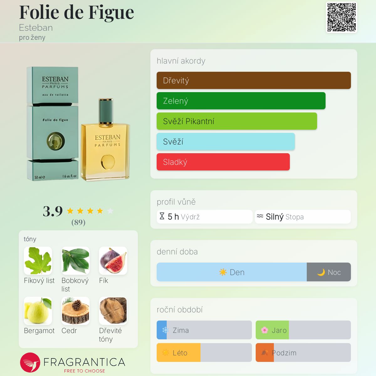 Folie de Figue podle Esteban je Floral Fruity vůně pro ženy. Folie de Figue byl/a uveden/a v roce 2007. Vrchní tóny jsou Fíkový list a Bergamot; střední tóny jsouBobkový list, Fík a Pomerančový květ ; základní tóny jsou Kůra fíkovníku, Cedr a Dřevité tóny.