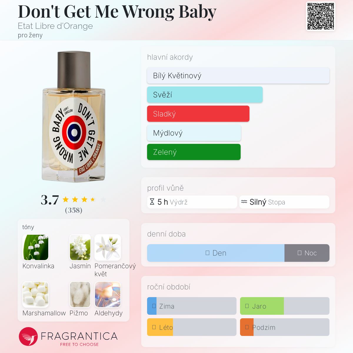 Don't Get Me Wrong Baby podle Etat Libre d'Orange je Orientální Floral vůně pro ženy. Don't Get Me Wrong Baby byl/a uveden/a v roce 2007. "Nosem" za touto vůní je Antoine Maisondieu.