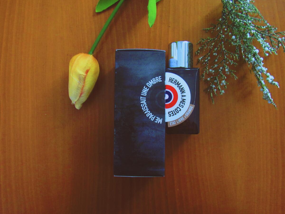Hermann à mes Côtés me Paraissait une Ombre podle Etat Libre d'Orange je Woody Aromatic vůně pro ženy a muže. Hermann à mes Côtés me Paraissait une Ombre byl/a uveden/a v roce 2015. "Nosem" za touto vůní je Quentin Bisch. Vrchní tóny jsou Dřevo Pepperwood™, Galbanum a Černý rybíz; střední tóny jsouGeosmin, Růžový olej a Olibanum ; základní tóny jsou Ambroxan, Pačuli, Calypsone a Vetiver.