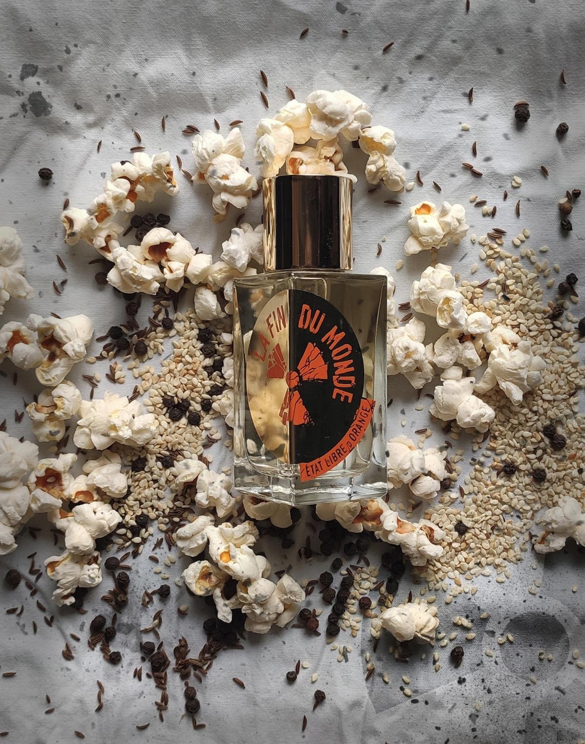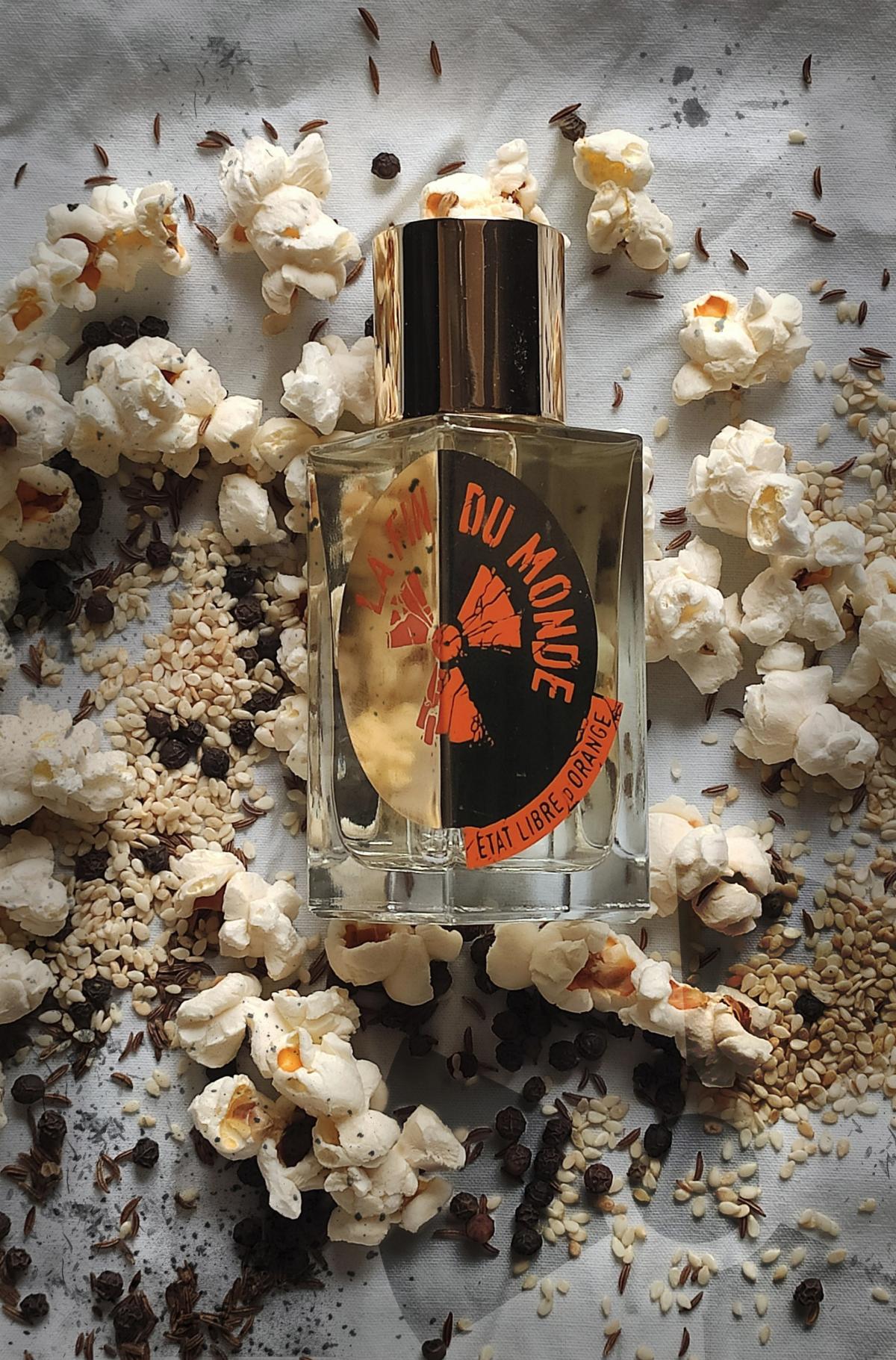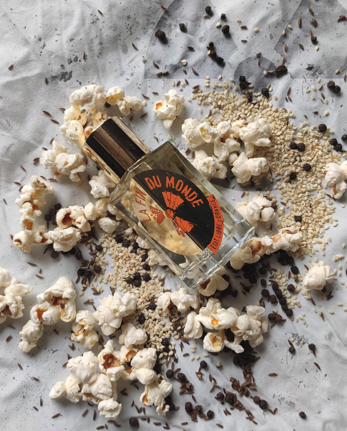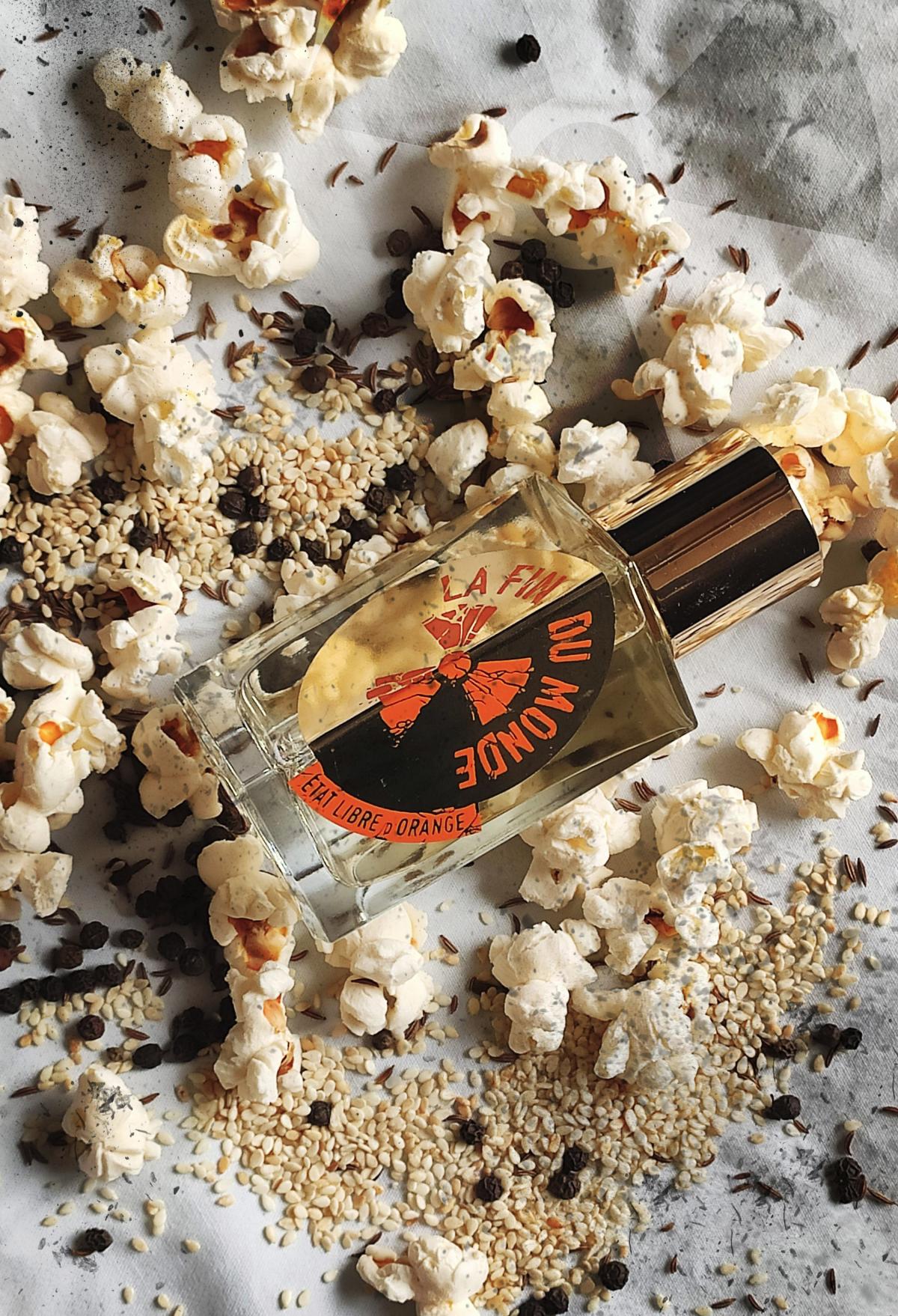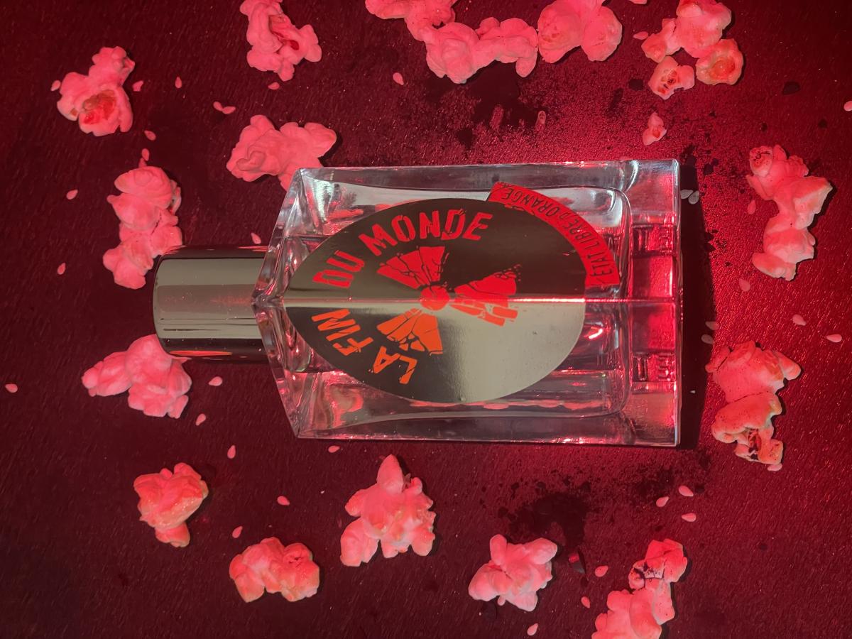Podle etat libre d orange má vonět jako konec světa. Mám představu, že jsem byla malé dítě a navštívila jsem s maminkou tivoli. Držím ji za ruku a cítím vůni její kožené kabelky s make-upem. Bliká spousta barevných světel, lidé se baví na kolotočích. Smích. Vše se odehrává ve zpomaleném záběru. S mámou stojíme ve frontě a čekáme na popcorn a cukrovou vatu z jednoho funusového stánku. Najednou se něco stane.