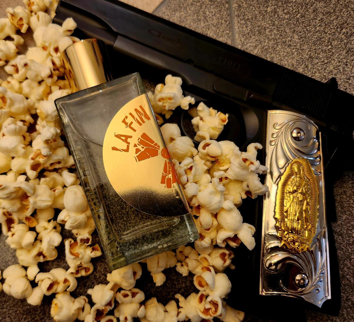 Myths de amouage jsem ještě neměla možnost vyzkoušet, ale tento parfém je můj nejoblíbenější z parfémů etat libre d'orange, které jsem zkoušela. Je to parfém založený na kosatci, a proto pudrový a sladký, i když v tomto případě je kosatec zpracován jiným způsobem než obvykle. Na jedné straně mu směs s dřevinami a pryskyřicemi dává trochu konzistentnější základ, i když jako ve většině eldových parfémů je velmi jemný. Poté následuje kořeněný náboj se zeleným bodem vetiveru. A nakonec ambrette a mrkvová semínka, která pomáhají vůni pudrovat, a střelný prach, který ji trochu rozbíjí a dodává jí lehce kouřový nádech. Všimla jsem si také velmi vzdušného nádechu, skoro jako by byl ve složení také nějaký aldehyd. A samozřejmě popcorn! Vůně je pro mě za 10! Sladká, ale ne mazlavá, a hlavně jiná.