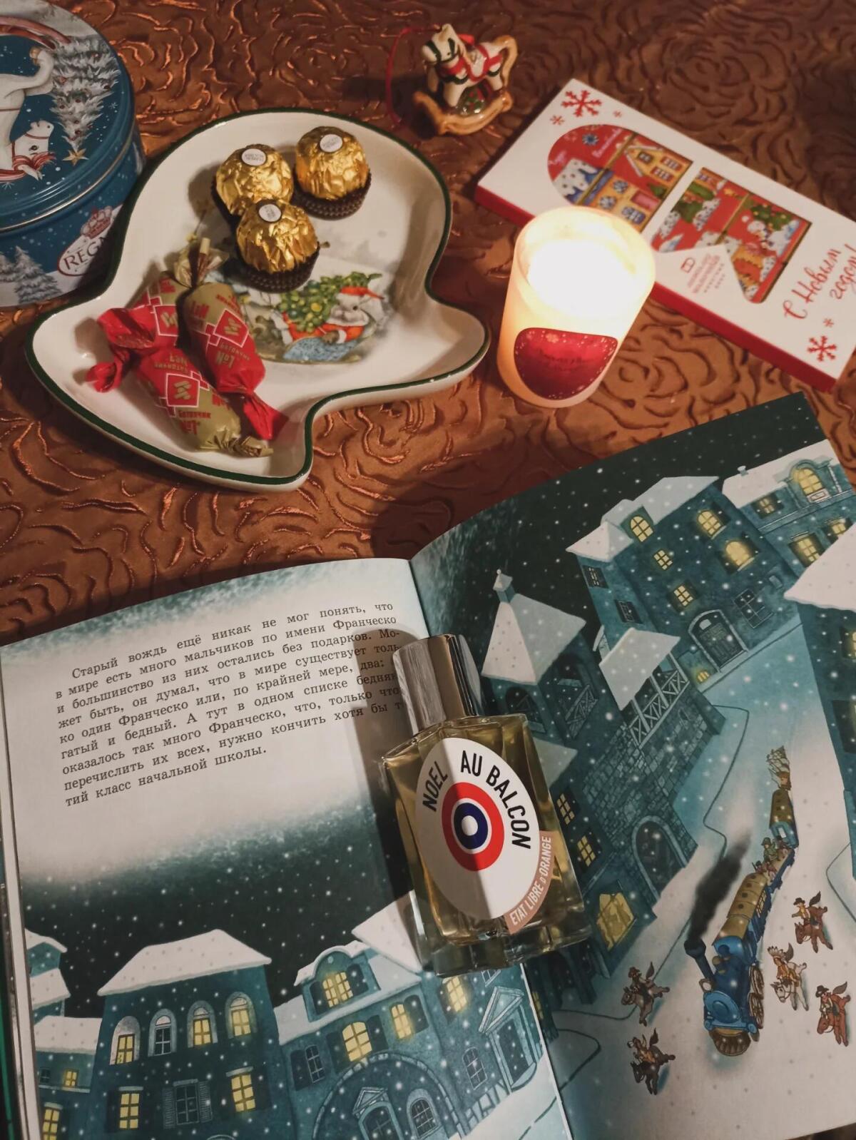 Poprvé jsem Noël au balcon slyšel v roce 2007 v kabaretu Moulin Rouge v Paříži. Tato vůně se tam nejen prodávala v malých lahvičkách s obrázkem ženských zad v korzetu (to si pamatuji lépe než název parfému), ale také nějakým způsobem vycházela z klimatizačního systému samotného kabaretu. Pokud jste do Moulin Rouge vešli v letní večer, okamžitě jste pocítili kontrast: horko na Boulevard de Clichy za dveřmi a studený vzduch v budově, odkud se linuly kořeněné vůně medu, skořice, chilli a ambry. Tuto vůni jsem si zapamatovala a byla jsem velmi zklamaná, že z butiku zmizela, když jsem se konečně rozhodla ji koupit. O pár let později jsem ve výloze obchodu Etat Libre d'Orange uviděla plakát se známým obrázkem, který jsem ještě neznala, a okamžitě jsem si koupila 50 ml. Pak jsem si koupila 100ml, ale v lahvičce s jiným designem, a příští rok si ji pravděpodobně koupím znovu.