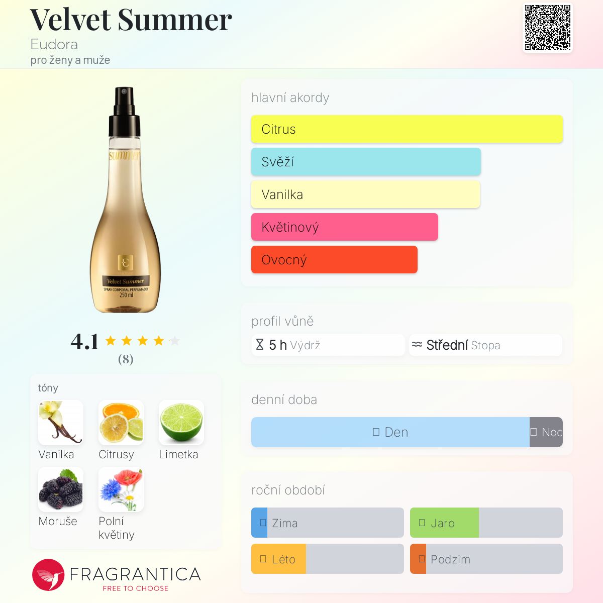 Velvet Summer podle Eudora je Citrus Aromatic vůně pro ženy a muže. Velvet Summer byl/a uveden/a v roce 2019.
