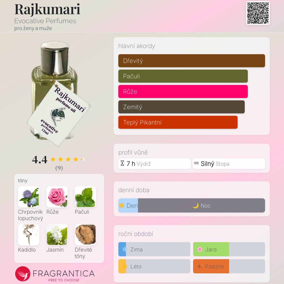 Rajkumari podle Evocative Perfumes je Floral vůně pro ženy a muže. Rajkumari byl/a uveden/a v roce 2017. "Nosem" za touto vůní je Mark Evans.