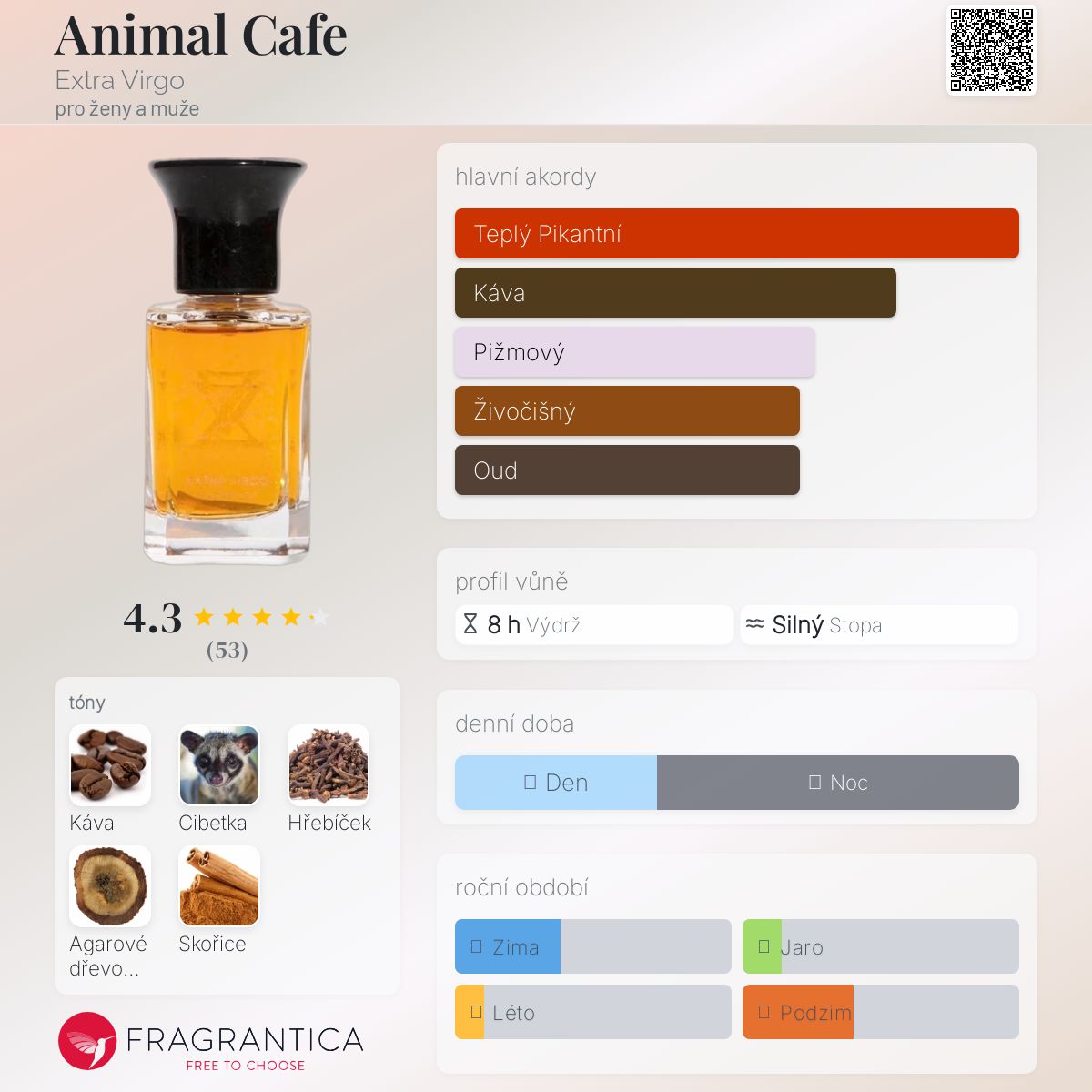 Animal Cafe podle Extra Virgo je Orientální Spicy vůně pro ženy a muže. Animal Cafe byl/a uveden/a v roce 2022. "Nosem" za touto vůní je Michele Marin.