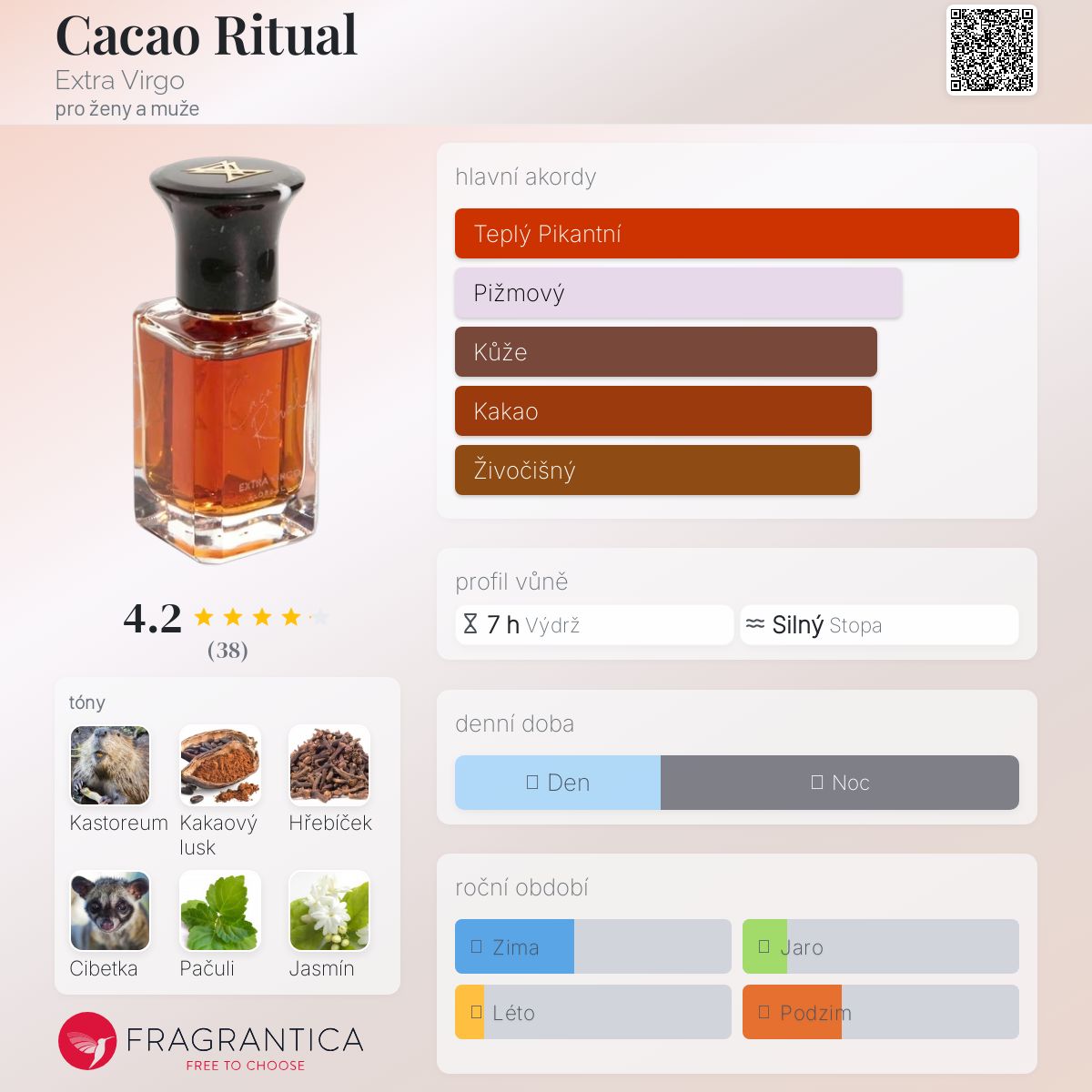 Cacao Ritual podle Extra Virgo je Orientální Spicy vůně pro ženy a muže. Cacao Ritual byl/a uveden/a v roce 2022. "Nosem" za touto vůní je Michele Marin.