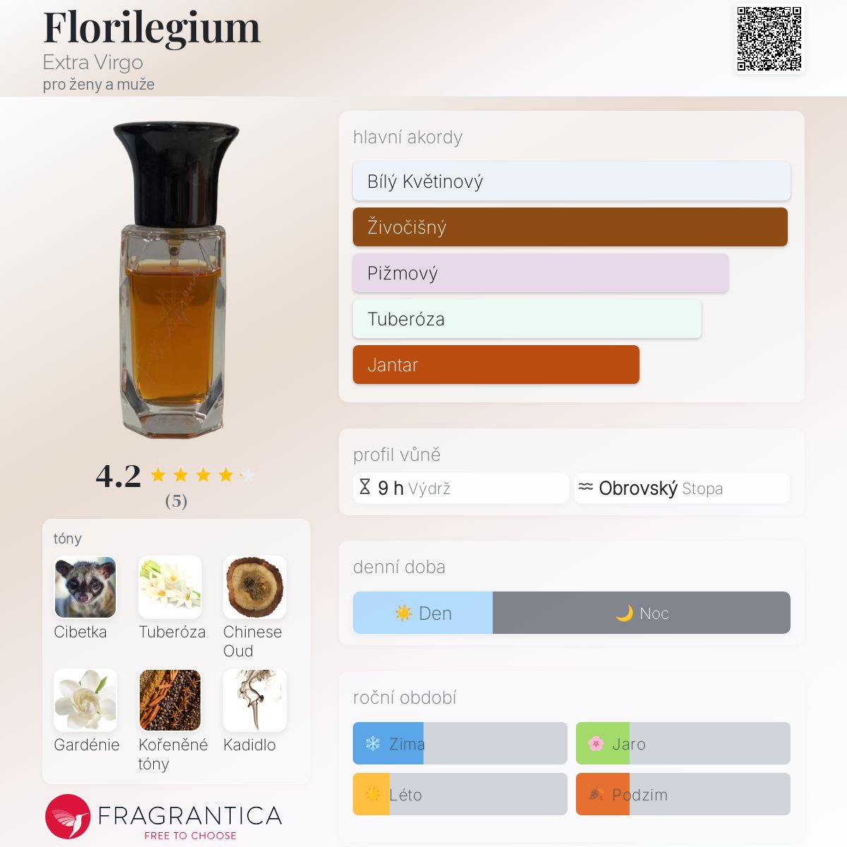 Florilegium podle Extra Virgo je Orientální Floral vůně pro ženy a muže. Toto je nová vůně. Florilegium byl/a uveden/a v roce 2025. Florilegium byl/a vytvořen/a Michele Marin a Alex Postiglione.