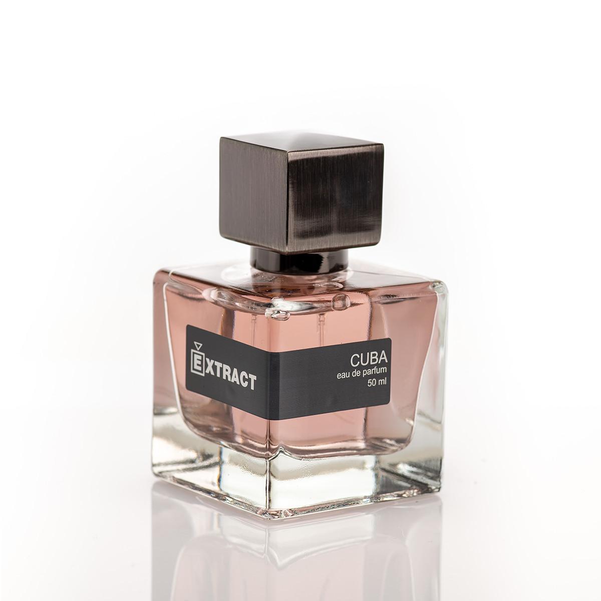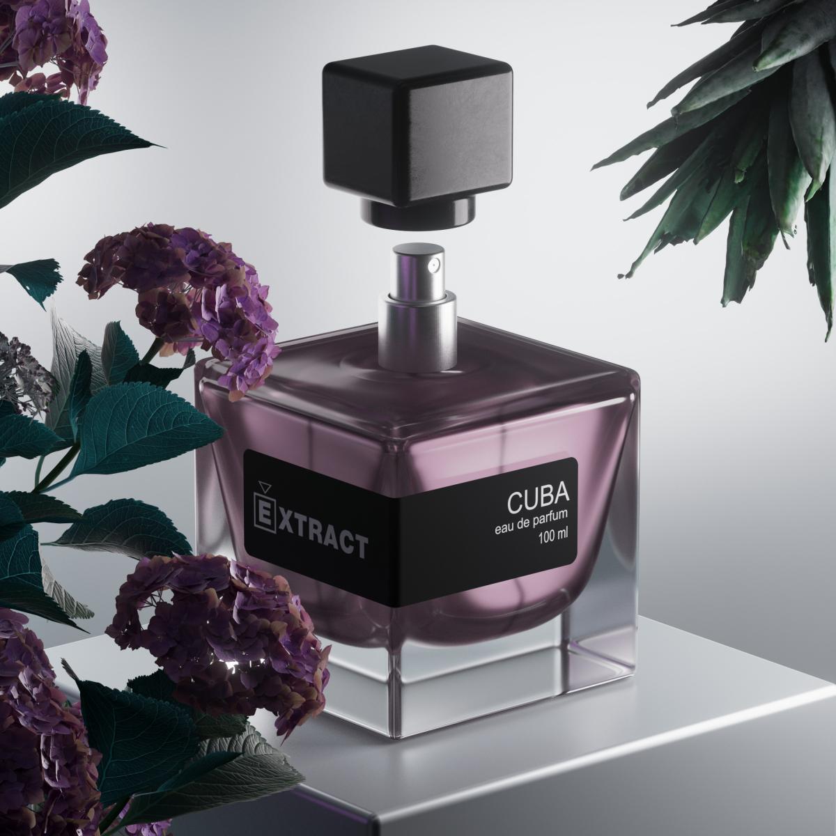 Cuba podle Extract je vůně pro ženy. Cuba byl/a uveden/a v roce 2022. Vrchní tóny jsou Pivoňka, Frézie a Mučenka; střední tóny jsouBroskev, Ananas a Limetka ; základní tóny jsou Jantar (ambra) a Cedr.