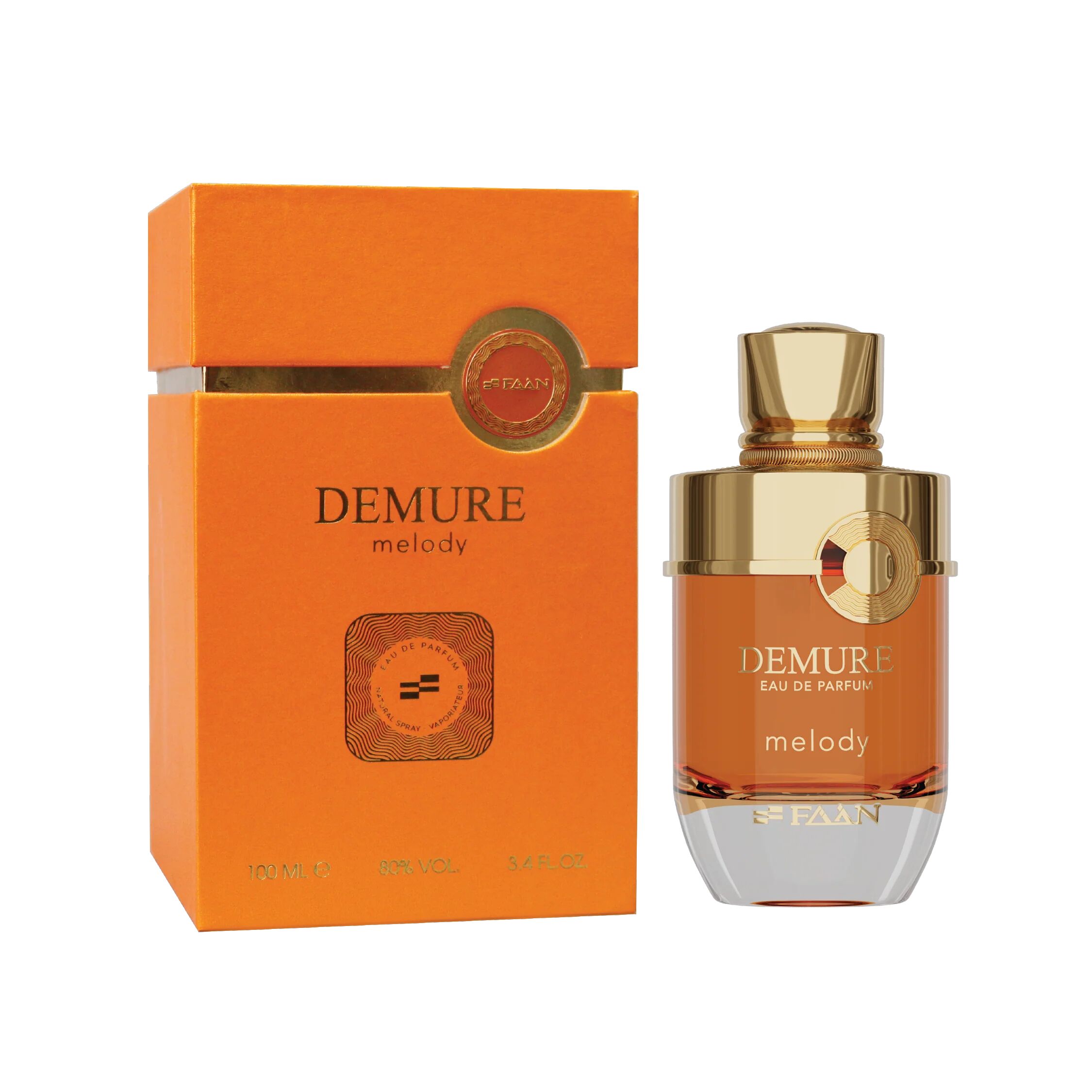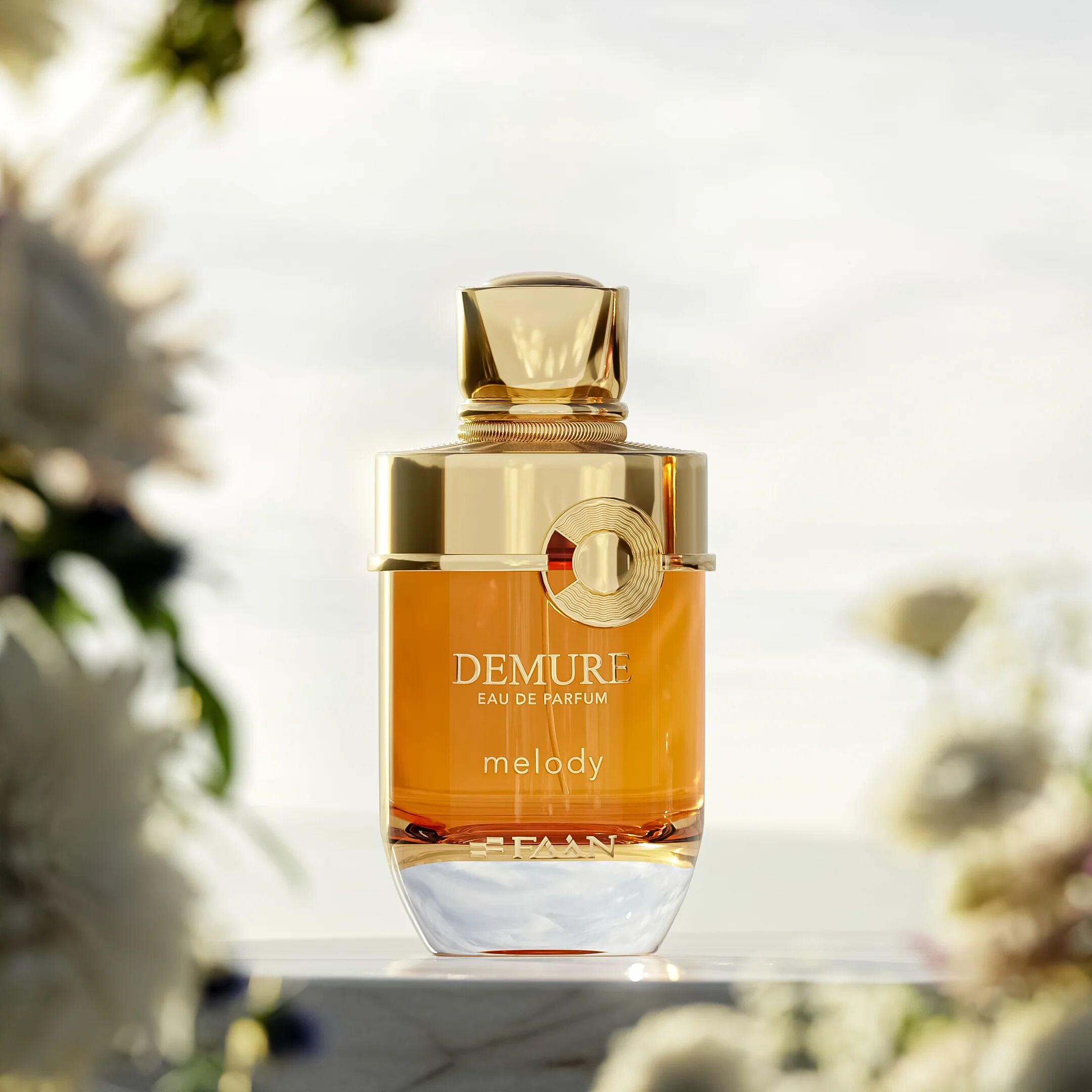 Demure Melody podle FAAN je Floral vůně pro ženy. Toto je nová vůně. Demure Melody byl/a uveden/a v roce 2024. Vrchní tóny jsou Růžový pepř, Nail Polish a Cukr; střední tóny jsouCukrová vata, Vanilkový cukr a Maliny ; základní tóny jsou Guajakové dřevo, Otočník a Bílé pižmo.