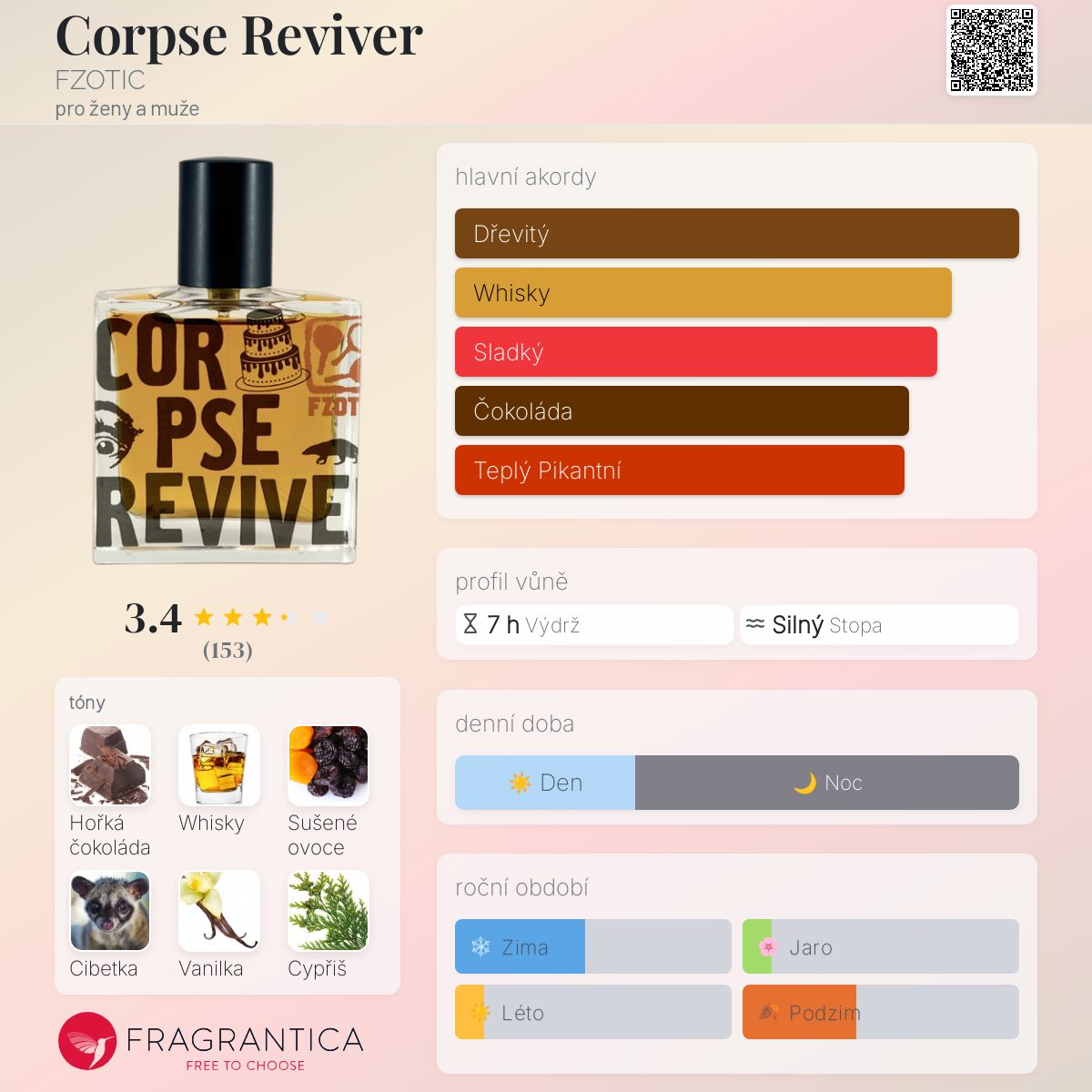 Corpse Reviver podle FZOTIC je Orientální Vanilla vůně pro ženy a muže. Corpse Reviver byl/a uveden/a v roce 2019. "Nosem" za touto vůní je Bruno Fazzolari.