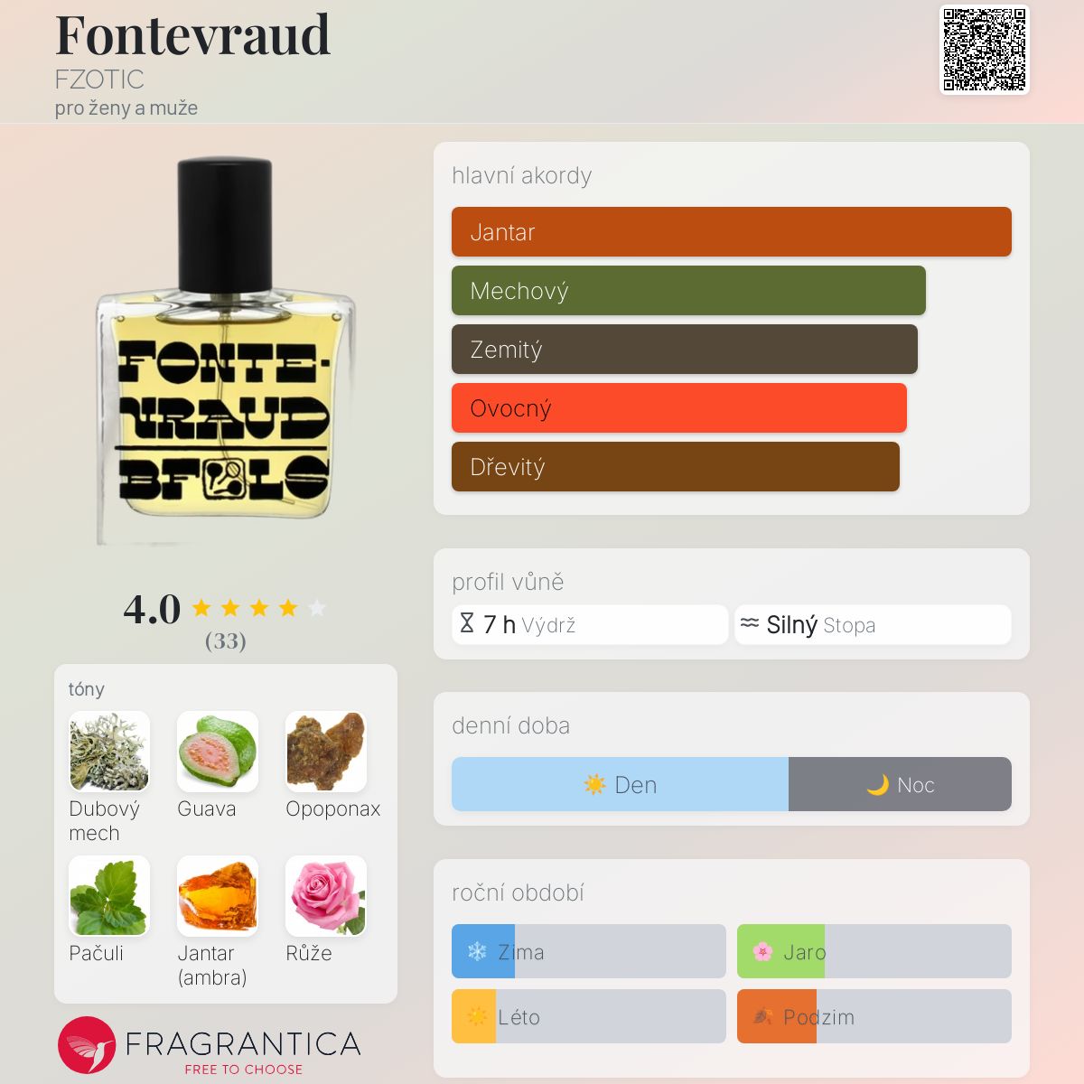 Fontevraud podle FZOTIC je vůně pro ženy a muže. Fontevraud byl/a uveden/a v roce 2018. "Nosem" za touto vůní je Bruno Fazzolari.