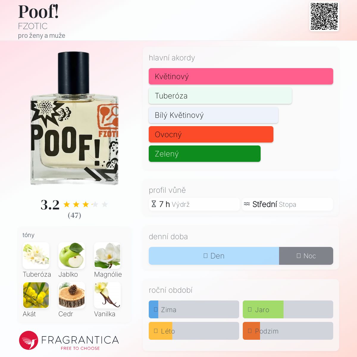 Poof! podle FZOTIC je Floral vůně pro ženy a muže. Poof! byl/a uveden/a v roce 2023. "Nosem" za touto vůní je Bruno Fazzolari.
