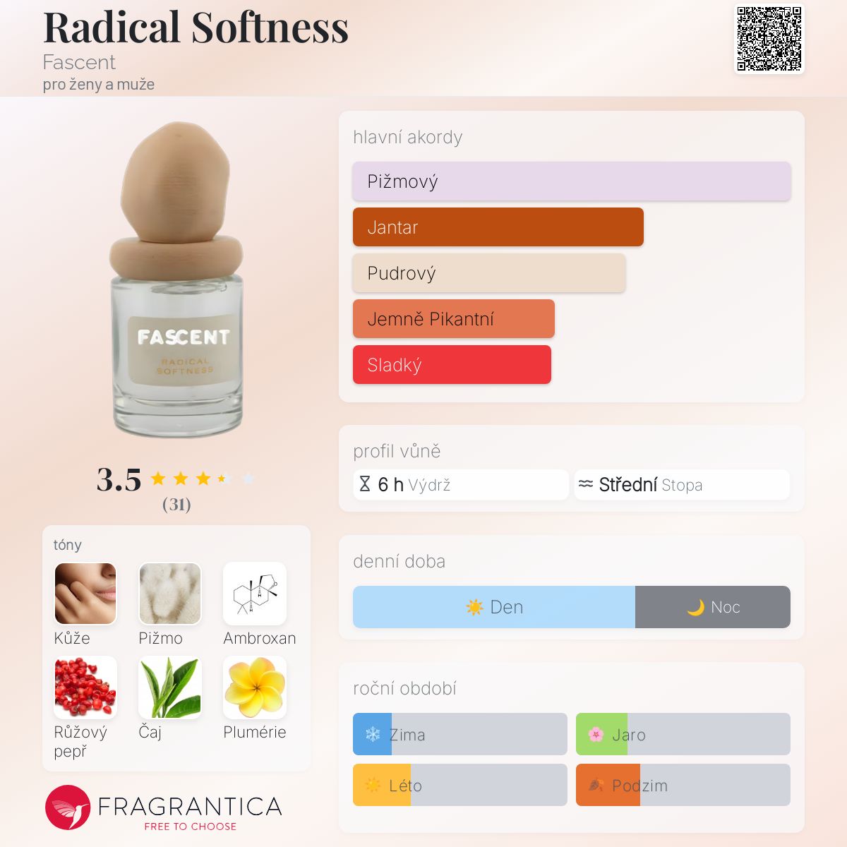 Radical Softness podle Fascent je Floral Woody Musk vůně pro ženy a muže. Radical Softness byl/a uveden/a v roce 2023.