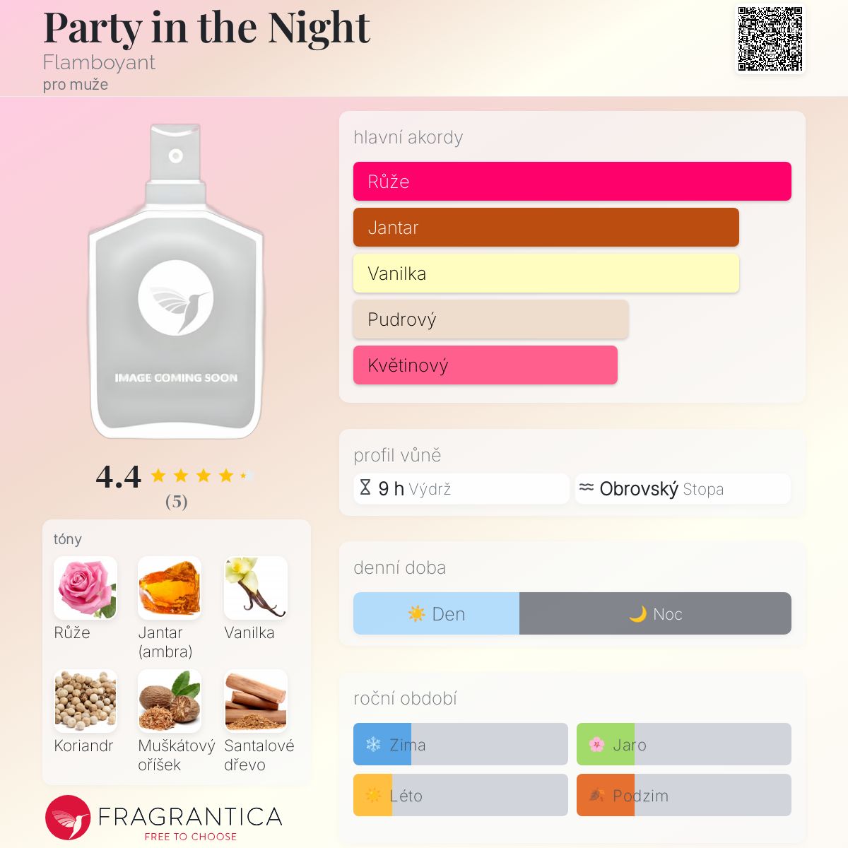 Party in the Night podle Flamboyant je vůně pro muže. Party in the Night byl/a uveden/a v roce 2016.