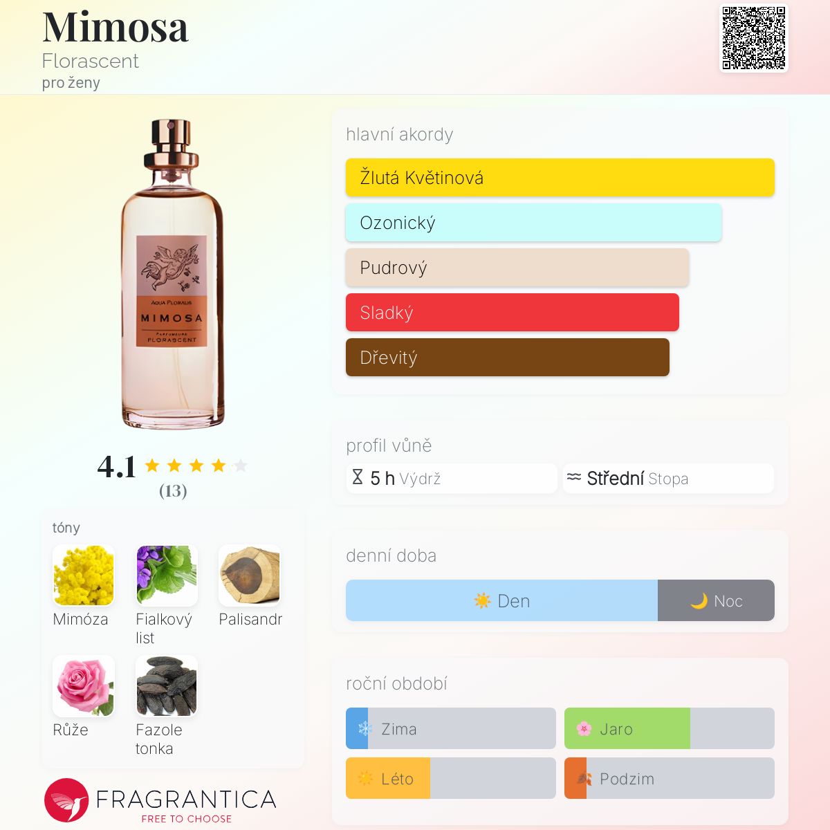 Mimosa podle Florascent je Floral vůně pro ženy. "Nosem" za touto vůní je Roland Tentunian. Vrchní tón je Fialkový list ; střední tóny jsouMimóza a Růže ; základní tóny jsou Palisandr a Fazole tonka.