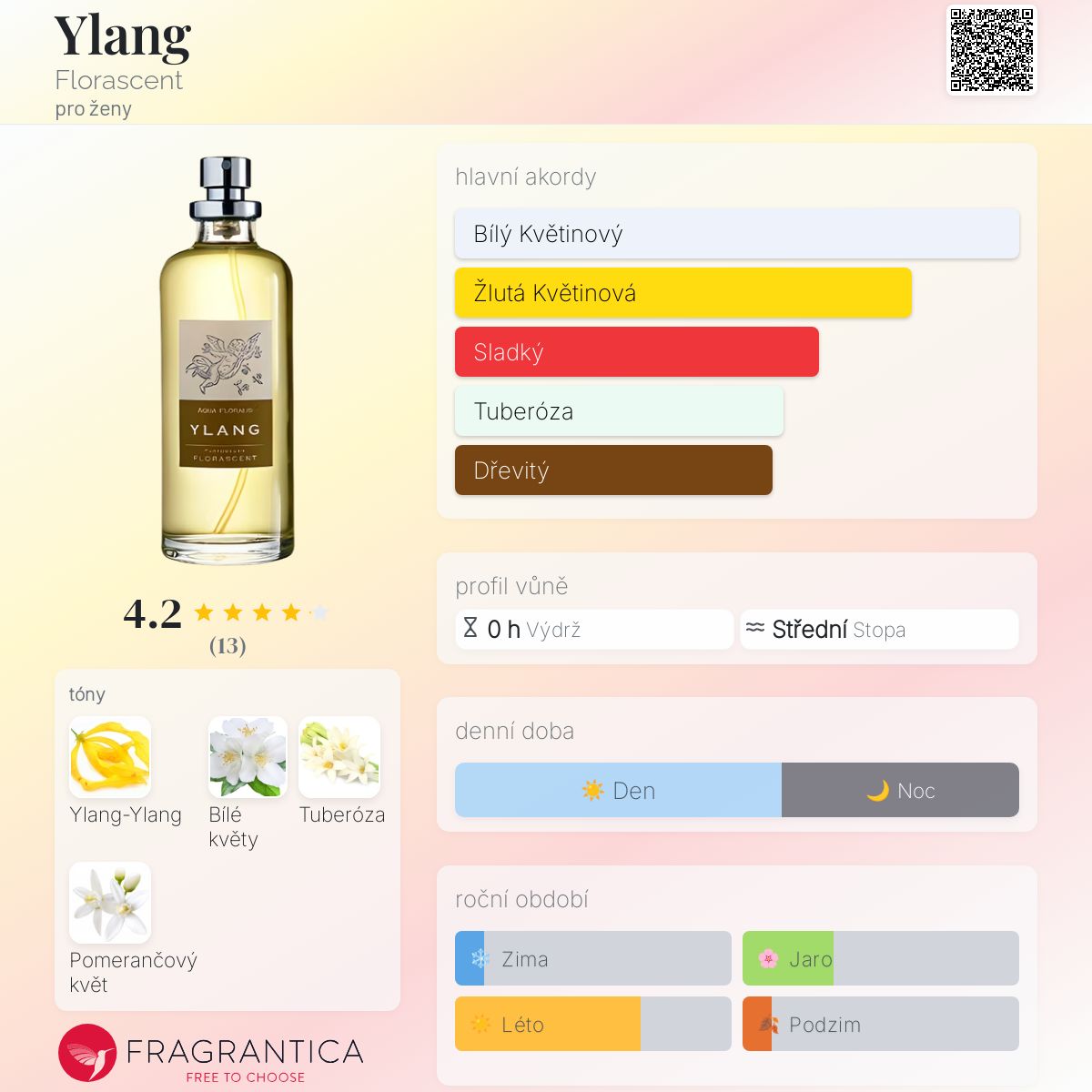 Ylang podle Florascent je Floral vůně pro ženy. "Nosem" za touto vůní je Roland Tentunian. Vrchní tón je Bílé květy ; střední tón jeYlang-Ylang ; základní tóny jsou Tuberóza a Květ afrického pomeranče.