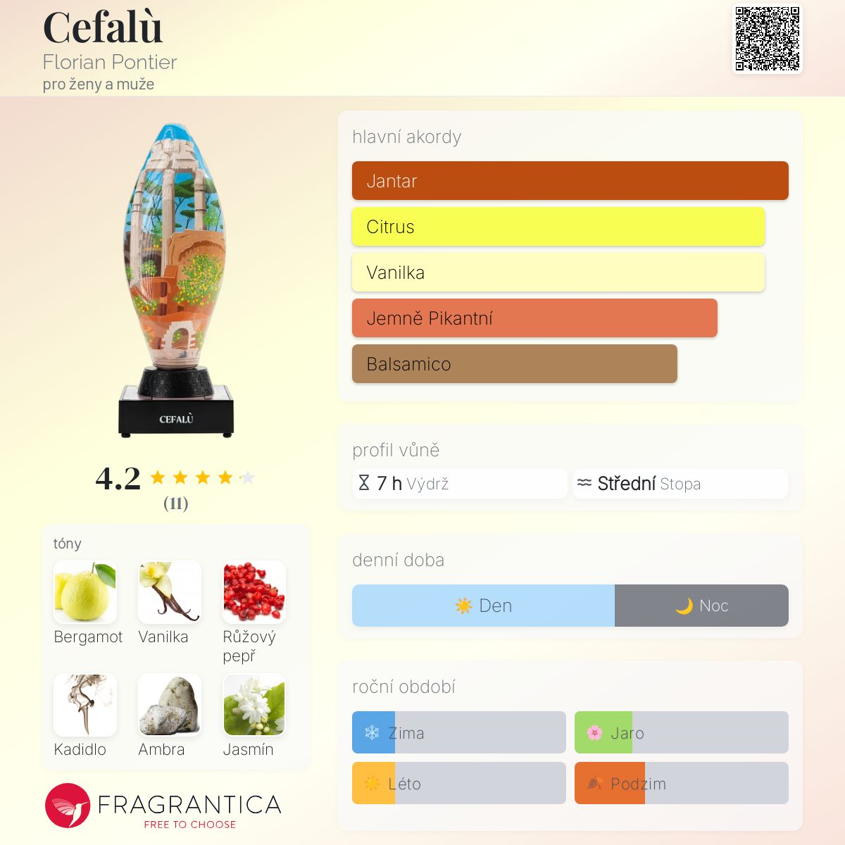 Cefalù podle Florian Pontier je Orientální Floral vůně pro ženy a muže. Toto je nová vůně. Cefalù byl/a uveden/a v roce 2025. "Nosem" za touto vůní je Chris Maurice. Vrchní tóny jsou Bergamot, Růžový pepř a Poupata rybízu; střední tóny jsouKadidlo, Ambra a Jasmín ; základní tóny jsou Vanilka, Dubový mech, Pačuli a Jantar (ambra).