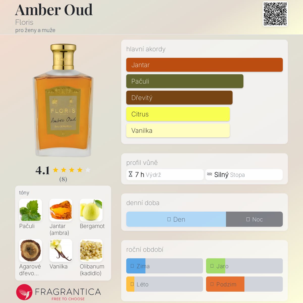 Amber Oud podle Floris je Orientální Woody vůně pro ženy a muže. Amber Oud byl/a uveden/a v roce 2014. Vrchní tóny jsou Bergamot a Olibanum; střední tóny jsouPačuli, Agarové dřevo (oud) a Růže ; základní tóny jsou Jantar (ambra), Agarové dřevo (oud), Vanilka, Labdanum a Myrha.