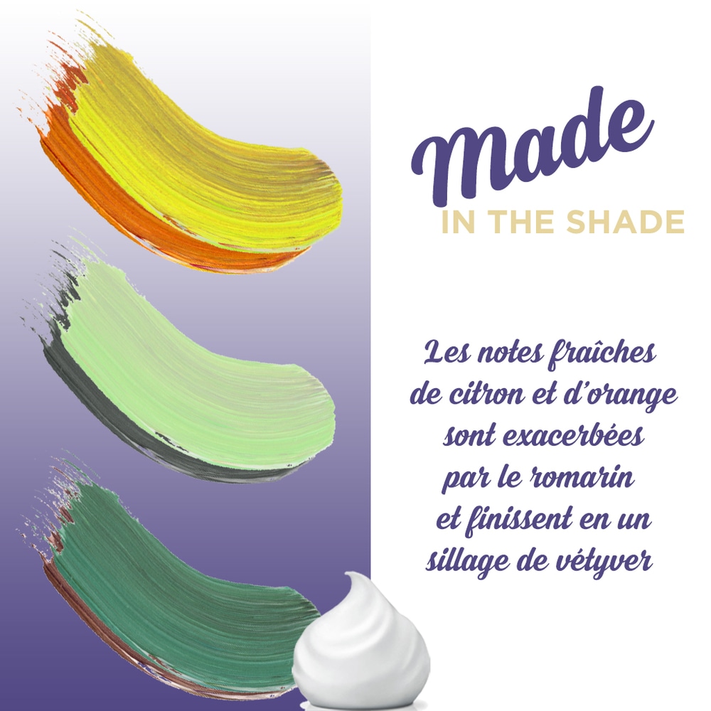 Made In The Shade podle Foamous je Aromatic vůně pro muže. Made In The Shade byl/a uveden/a v roce 2019. Vrchní tóny jsou Pomeranč a Citrón; střední tóny jsouRozmarýn a Jasmín ; základní tóny jsou Vetiver, Pižmo a Mech.