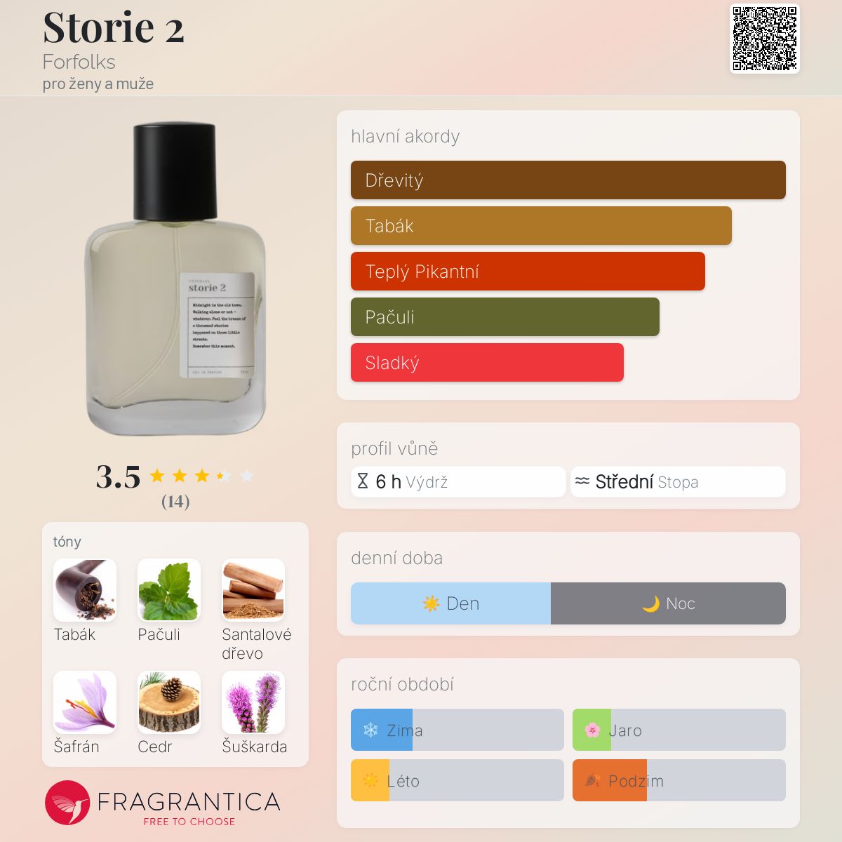Storie 2 podle Forfolks je Orientální vůně pro ženy a muže. Storie 2 byl/a uveden/a v roce 2022. "Nosem" za touto vůní je Maksim Ambrosevich.