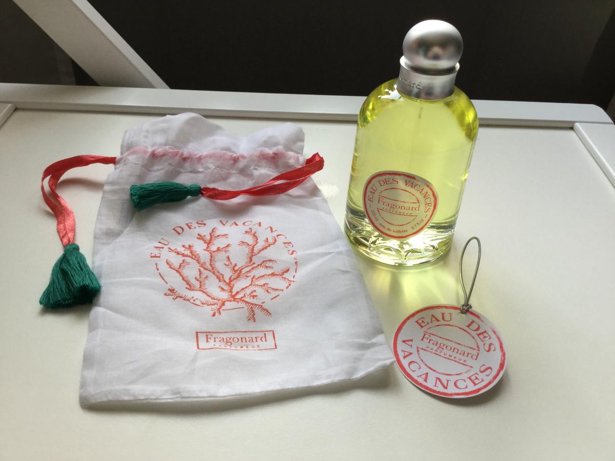 Eau des Vacances podle Fragonard je Floral Woody Musk vůně pro ženy a muže. Eau des Vacances byl/a uveden/a v roce 2015. Vrchní tóny jsou Mandarinka a Bergamot; střední tóny jsouZázvor, Pomerančový květ, Seno a Růže ; základní tóny jsou Pižmo a Cedr.