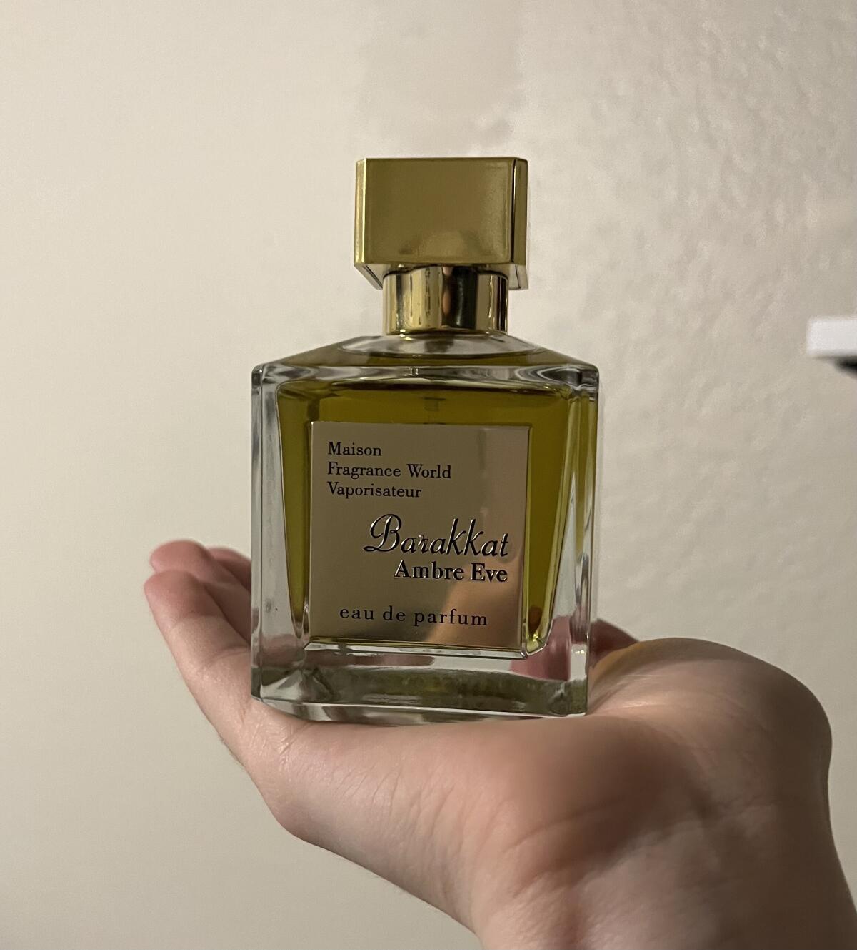 Barakkat Ambre Eve podle Fragrance World je Orientální vůně pro ženy a muže. Barakkat Ambre Eve byl/a uveden/a v roce 2022. Vrchní tóny jsou Labdanum a Hořký pomeranč; střední tón jeSiamský (thajský) benzoin ; základní tóny jsou Jantar (ambra), Vanilka, Fazole tonka a Cedr.